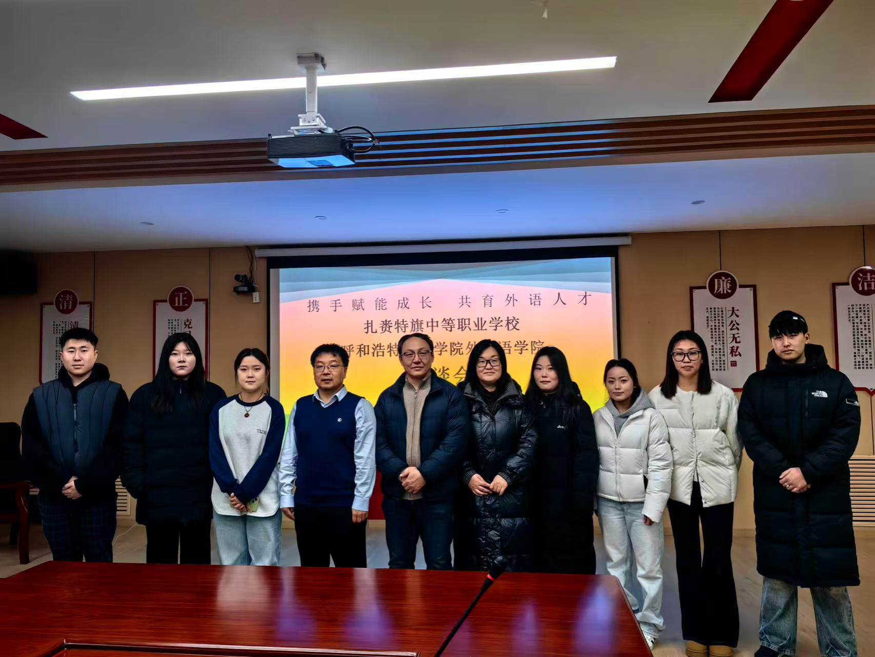11月24日下午,外国语学院院长秦红喜、党政办公室主任胡日查毕力格一行在扎赉特旗教育局副局长孙胜利的陪同下,赴扎赉特旗第三中学、扎赉特旗中等职业学校看望在岗实习生并开展实地调研。两校领导班子成员、指导教师及全体外国语学院实习生参加座谈交流。