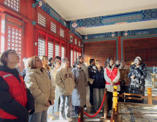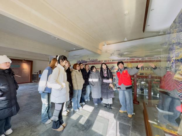 12月18日,外国语学院23级翻译班全体同学前往和硕恪靖公主府博物院,开展了一场沉浸式体验教学活动。本次实践活动是多语教研室吴丹老师依托《跨文化交际》课程组织策划的第二次教学实践活动,本次活动邀请银龄教师陈亚杰教授进行联合授课,通过“翻译实践”与“文化讲述”双重任务,锻炼了学生英语语言应用能力、跨文化交际能力和“用英语讲述中国文化”的外语国际传播能力。