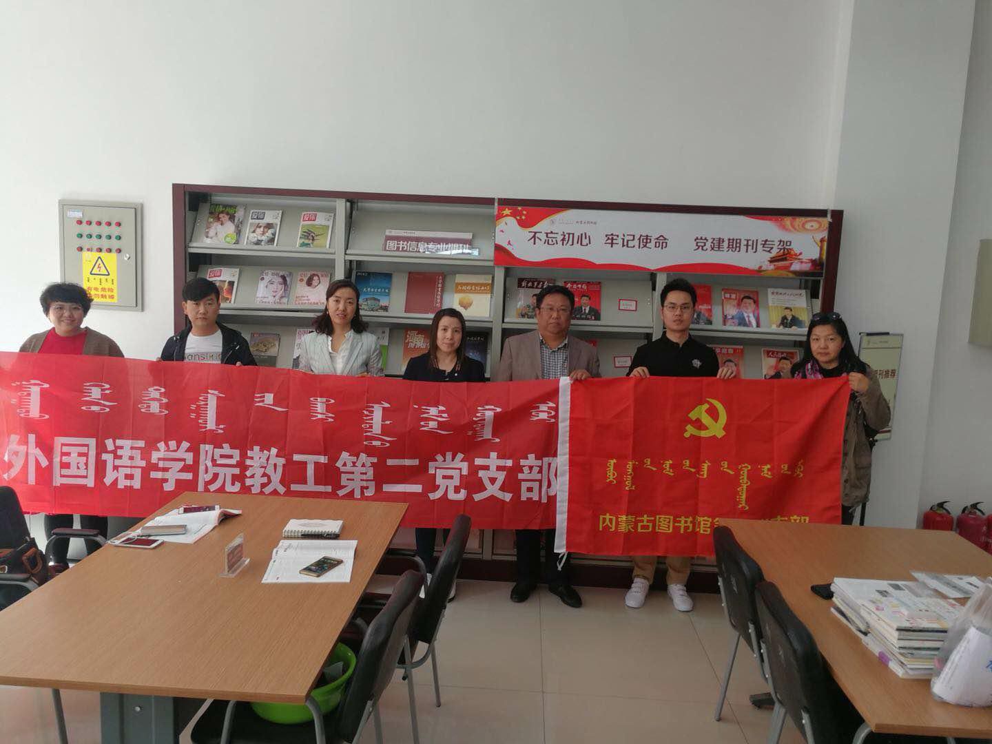 2018年4月25日,Beat365唯一官方网站外语系教工第二党支部与内蒙古图书馆第三党支部联合开展“书香砺初心”主题党日活动。外语系党总支书记布和朝鲁、主任肖查娜及支部全体党员参与了此次活动。