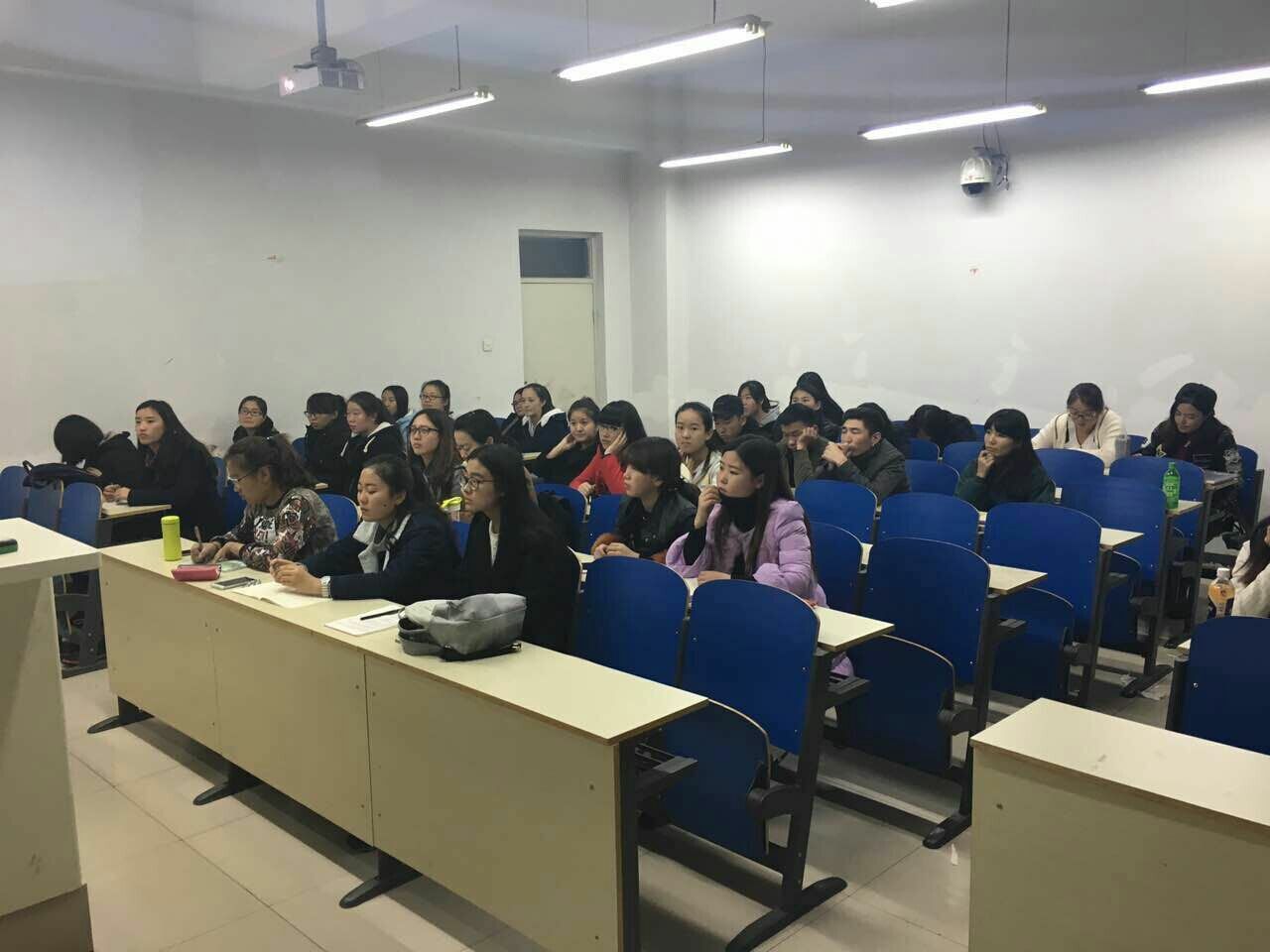 讲座以习近平主席关于民族工作的重要论述:“民族团结重在交心、将心比心、以心换心”为开端,阐述了五十六个民族团结的重要性,讲解了民族院校学生传承和弘扬民族文化的优越条件及必要性。
