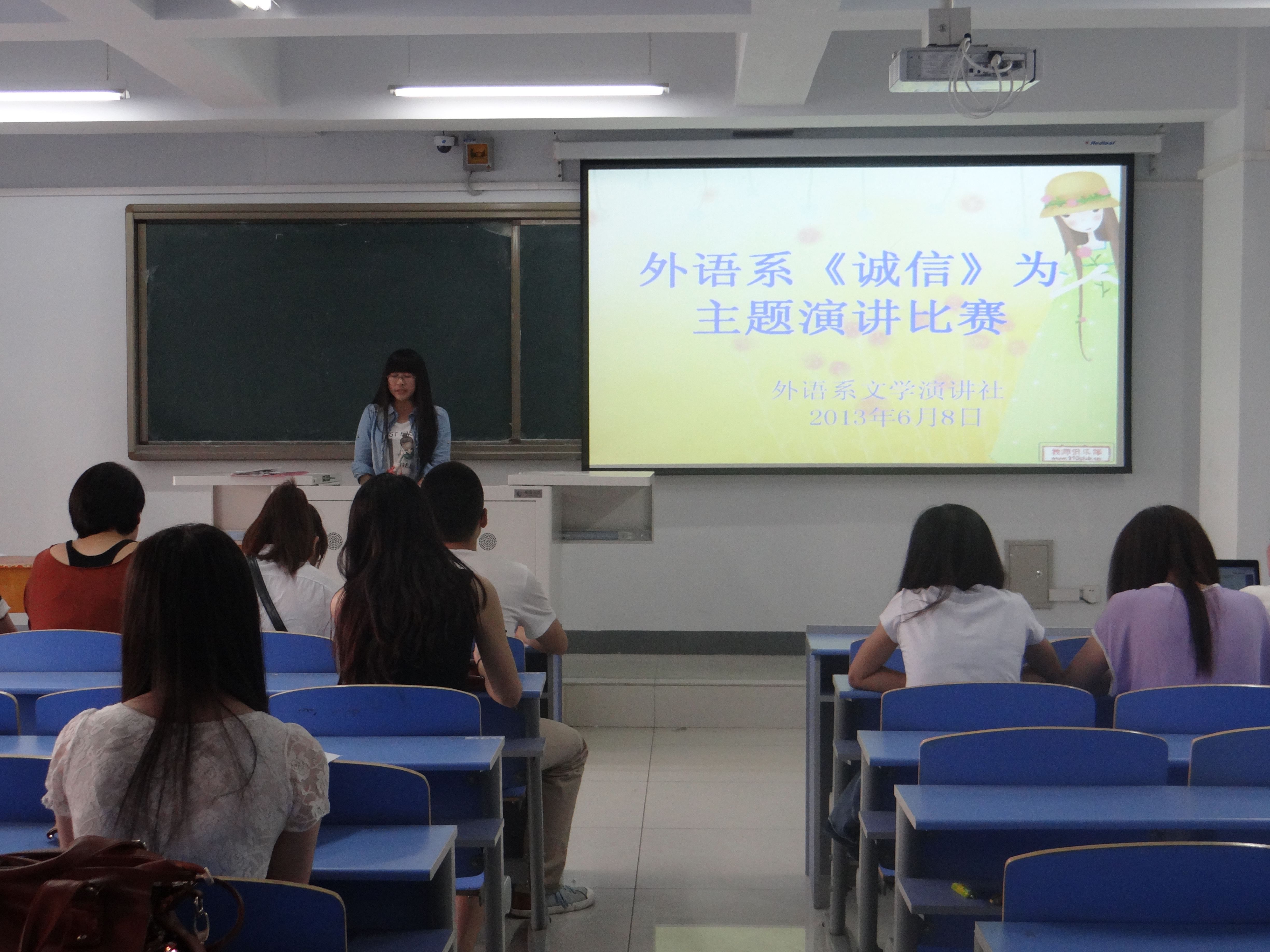 为使感恩、诚信思想深入学生头脑,外语系团总支于2013年6月8日在新教学楼618教室举办了《诚信》主题的演讲比赛。外语系23名选手参加了比赛。
