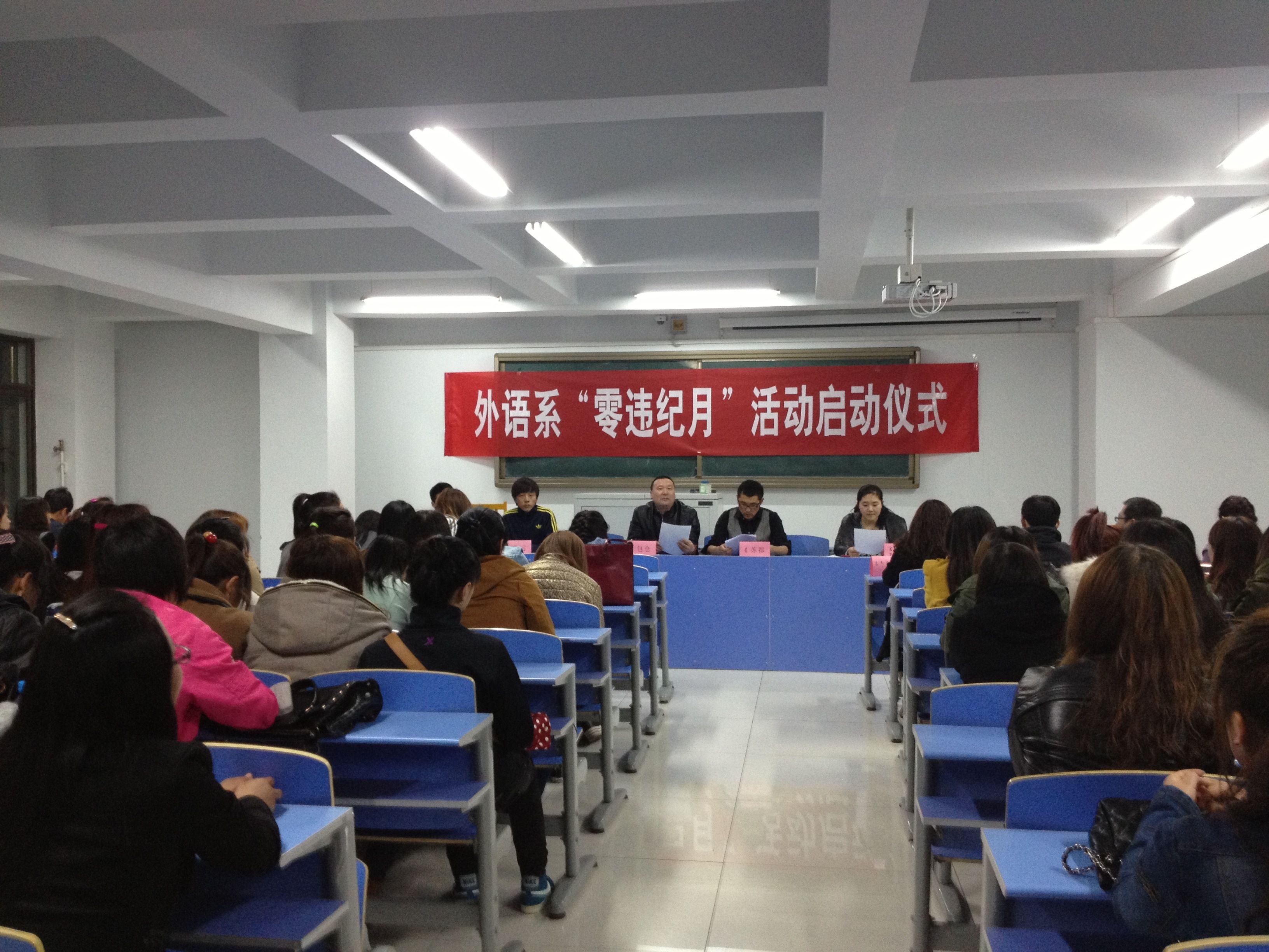 仪式上,团总支干事高帆宣读了外语系“零违纪月”活动方案,向在场师生明确了本次活动的目的、教育内容、具体措施及活动要求,并组织各班主任、各班学生签写活动承诺书。外语系“零违纪月”活动就此拉开帷幕。