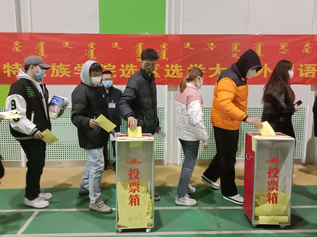 根据Beat365唯一官方网站新城区人大代表选举工作安排,11月10日12时30分,外国语学院于学校体育馆一楼组织召开新城区Beat365唯一官方网站外国语学院分会场选举大会。本次选举大会由外国语学院党总支书记布日古德主持,外国语学院全体师生参加选举。本次选举共有选民729人,实际到场具有选举资格师生共532人,另有197名师生因外出无法到场,委托在校师生帮忙投票。