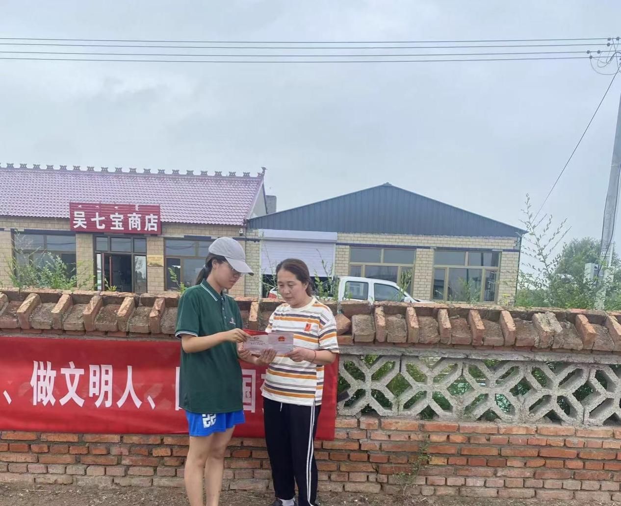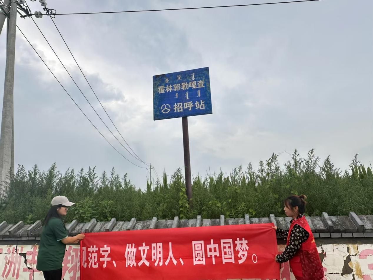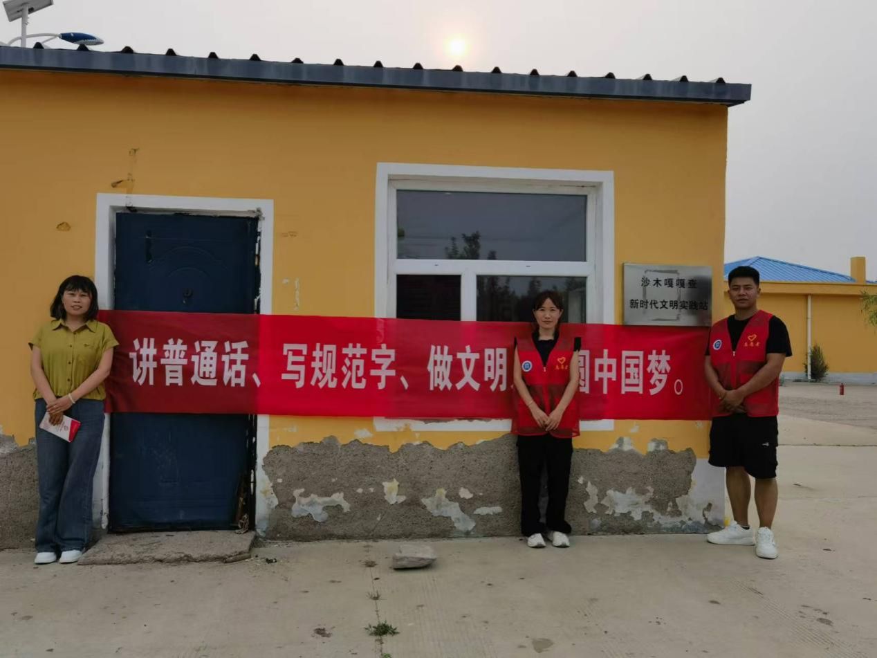 此外,志愿者们精心设计了多条富有感染力的宣传标语横幅,如“讲普通话、写规范字、做文明人、圆中国梦”、“书同文、语同音、人同心”等,并在村(嘎查)的醒目位置进行了张贴,营造了浓厚的学习普通话氛围。