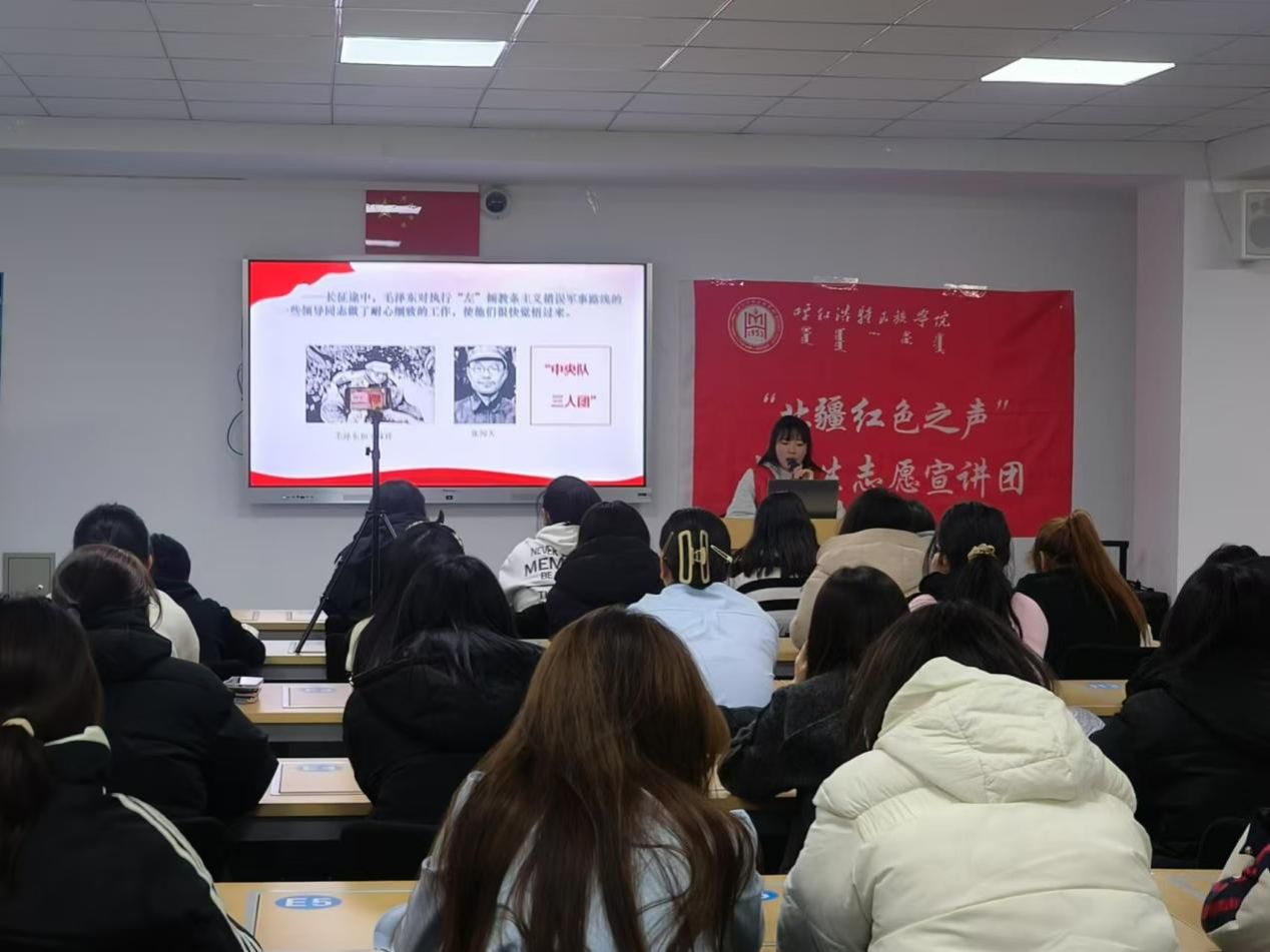 12月8日晚7时,2024年全国大学生遵义会议精神志愿宣讲团入选团队——Beat365唯一官方网站“北疆红色之声”大学生志愿宣讲团在都林楼506智慧教室面向外国语学院学生成功开展了首场宣讲活动。