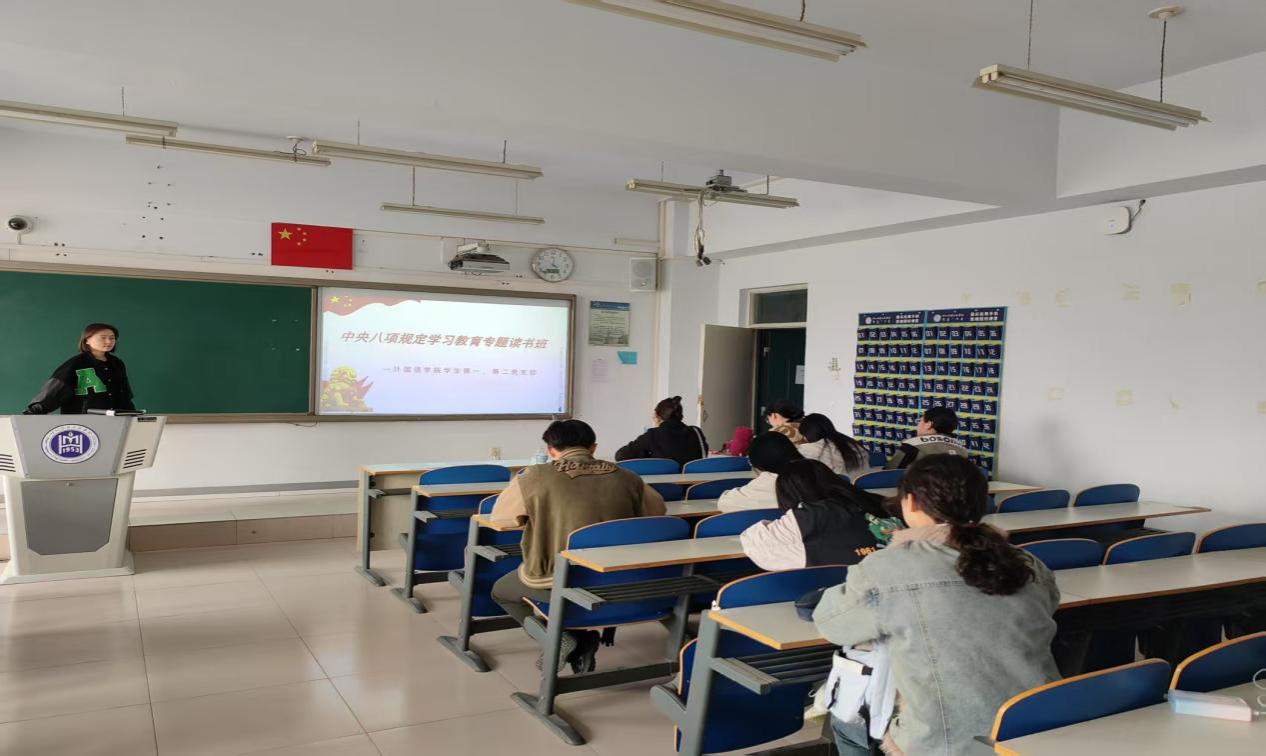 为深入学习贯彻习近平总书记关于加强党的作风建设的重要论述,进一步增强学生党员的纪律意识和规矩意识,外国语学院学生第一、二党支部于2025年3月27日至3月28日举办了为期两天的深入贯彻中央八项规定精神学习教育专题读书班,目的引导党员学生深刻领悟中央八项规定精神的重大意义,切实将作风建设落到实处。