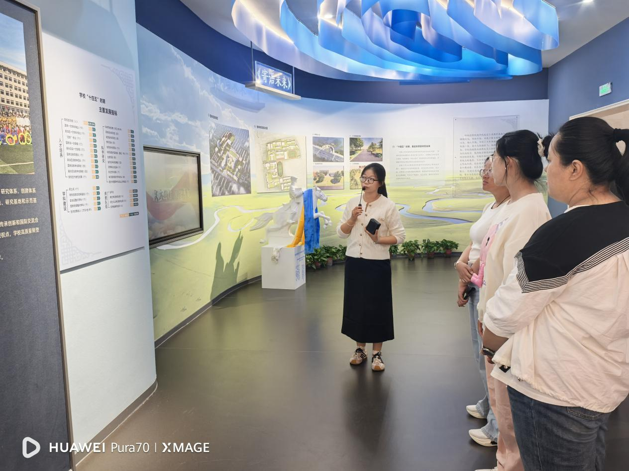 在铸牢中华民族共同体意识教育馆内,新生们在讲解员的引导下,依次参观了各个展区。通过丰富的历史图片、珍贵的文物实物、生动的场景复原,同学们系统了解各民族在长期历史进程中交往交流交融的光辉历程,深刻认识到“汉族离不开少数民族,少数民族离不开汉族,各少数民族之间也相互离不开”的深刻内涵。随后,新生们来到校史馆。馆内的每一张照片、每一件展品、每一段文字,都承载着学校的厚重历史与精神传承。从学校建校初期的艰难创业,到如今在学科建设、人才培养、科研创新等方面取得的丰硕成果,讲解员娓娓道来,将学校的发展脉络清晰地呈现在新生面前。同学们认真聆听学校知名校友的奋斗故事,感受着学校“崇正、尚智、务本、传承”校训的深刻内涵。