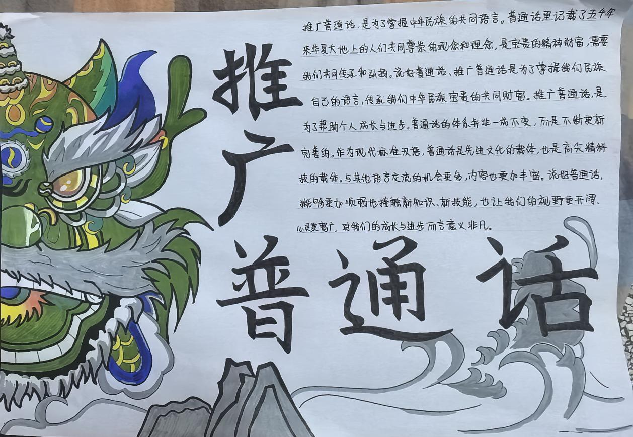 此次主题手抄报活动,不仅是一次文化实践,更是一堂生动的爱国主义教育课。通过亲手创作,同学们深刻感受到了中华民族浓郁的文化气息,激发了学生们的民族自豪感和爱国主义情怀;体会到普通话作为国家通用语言文字,是传承中华优秀传统文化、增进民族凝聚力、推动社会进步的重要工具。