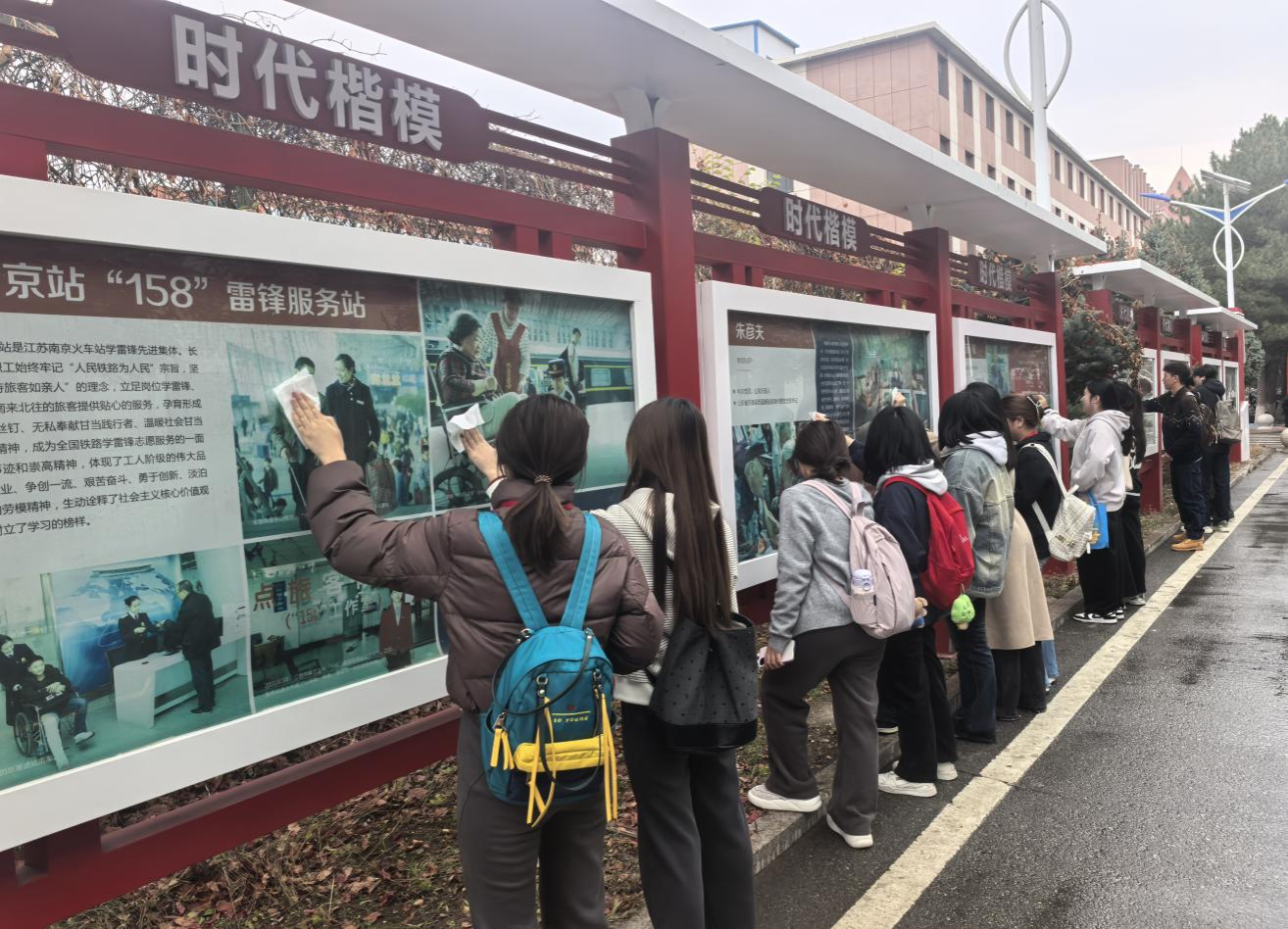 为发挥青马学员的先锋模范作用,营造整洁优美的校园环境,助力学校本科教育教学审核评估,11月6日,外国语学院组织2025年“青马工程”培训班学员在校内开展清扫时代楷模文化长廊志愿服务活动。