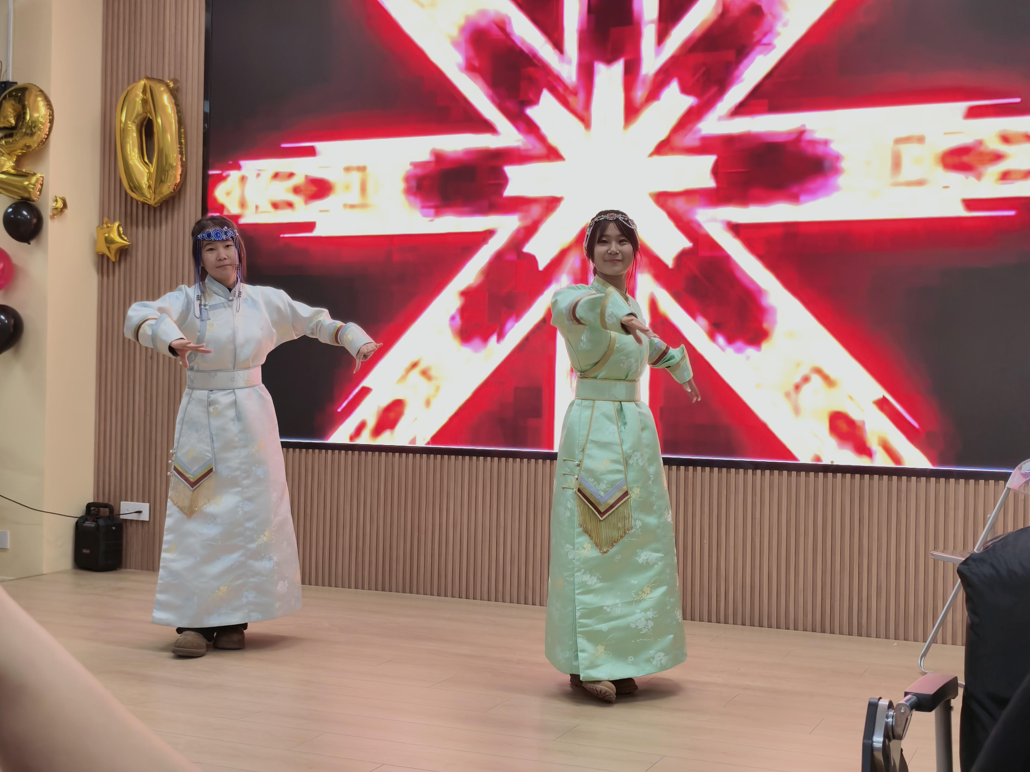 本次元旦联欢晚会现场氛围热烈融洽,社团部古典舞《十面埋伏》以古韵舞姿拉开序幕,“就不听指挥”游戏反向互动笑料不断;文体部小品《上课请听讲》生动再现校园趣事,“抢凳子”游戏将现场气氛推向小高潮。网宣部与组织部合作的《蒙古舞串烧》洋溢民族风情,“不能说的秘密”问答游戏考验知识与反应;权益部歌曲《你不知道的事》温柔动人,“数字炸弹”让大家在紧张猜数字中体验博弈乐趣。网宣部独舞《psycho》活力四射,“答非所问”游戏奇葩回答频出;办公部蒙语歌曲《Minii Zahia》独具韵味,“321看这边”游戏考验肢体反应与临场应变,攻守对决点燃全场。“动作狼人杀”在推理与肢体表现中增进感情;办公部歌曲《心之火》激昂收尾,“萝卜蹲”游戏节奏欢快,为活动画上圆满句号。各部门成员积极参与,在协作与竞争中增进了情谊,整场活动欢乐不断、暖意满满。