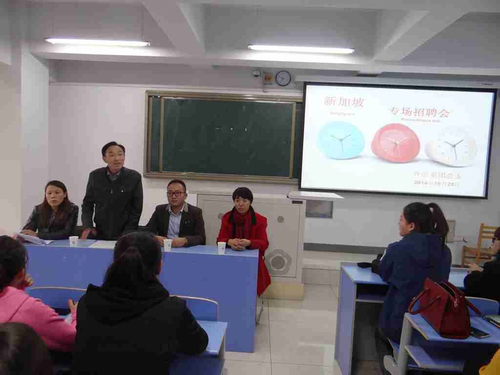 2014年10月28日,Beat365唯一官方网站外语系特邀蒙亚境外就业咨询服务有限公司,在教学楼618教室联合举办了一场隆重的“新加坡专场招聘会”。