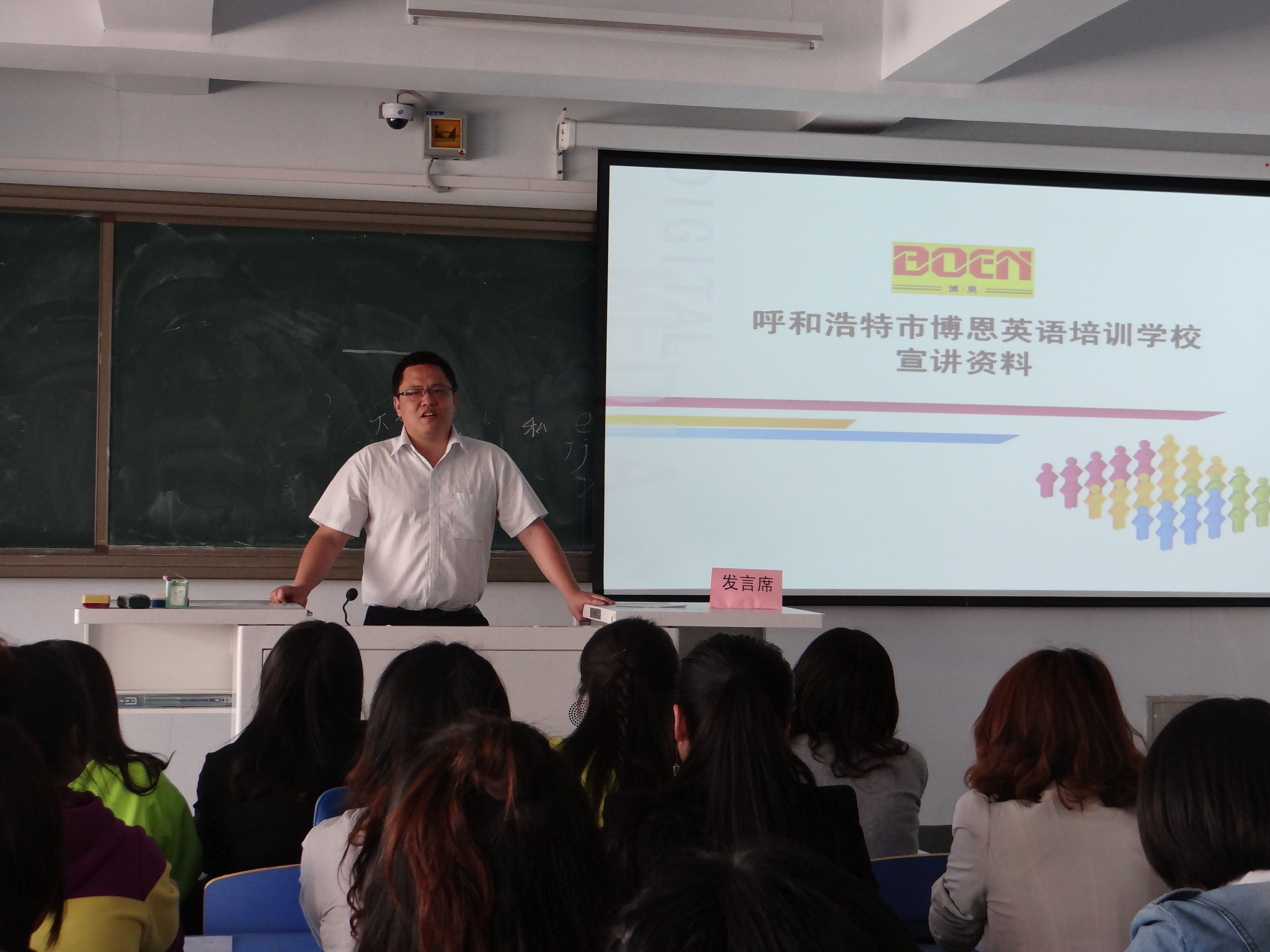 洽谈会上,用人单位呼市回民区博恩英语培训学校杨校长向在座的毕业生介绍了学校的基本情况,为我系毕业生提供了包括专职、兼职的英语、奥数任课教师,兼职英语、数学助教等多个工种,20个岗位,并提供社会保险、住宿、旅游、寒暑假等福利。随后,部分毕业生向工作人员进行了简单的自我介绍,并与工作人员进行了互动交流,整个洽谈会进行得十分顺利。