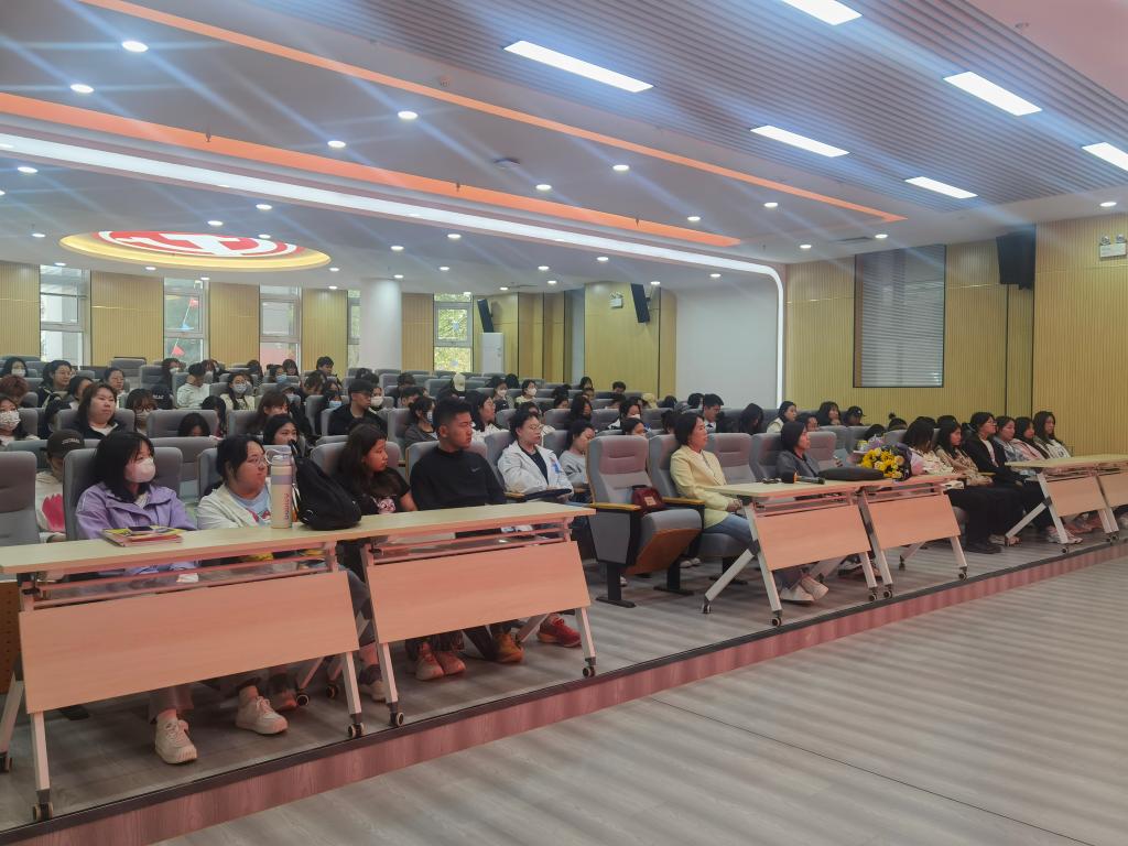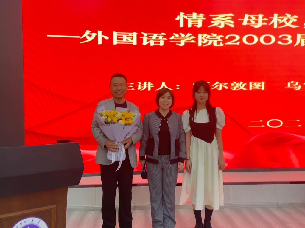 为进一步强化我院学生的职业发展教育,促进学生树立正确的就业观念、提高就业和实践的能力,值此喜迎校庆70周年之际,外国语学院于5月6日下午在北院图书馆一楼报告厅举办“情系母校,共话成长”高效就业专题分享会。本次分享会特邀请学院2003届优秀毕业生额尔敦图主讲,学院领导班子、2023届毕业生和2020级学生代表、班主任、辅导员共计150余人现场聆听。
