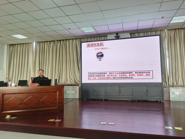 为了进一步加强学生管理工作和心理健康教育工作,11月7日上午,学校邀请内蒙古民族大学学生工作部部长白树全作了题为“心理危机的识别与干预”心理健康教育专题辅导讲座。讲座由学生工作部部长杨福梅主持。学校专职辅导员、班主任、学生干部100余人聆听了专题辅导。