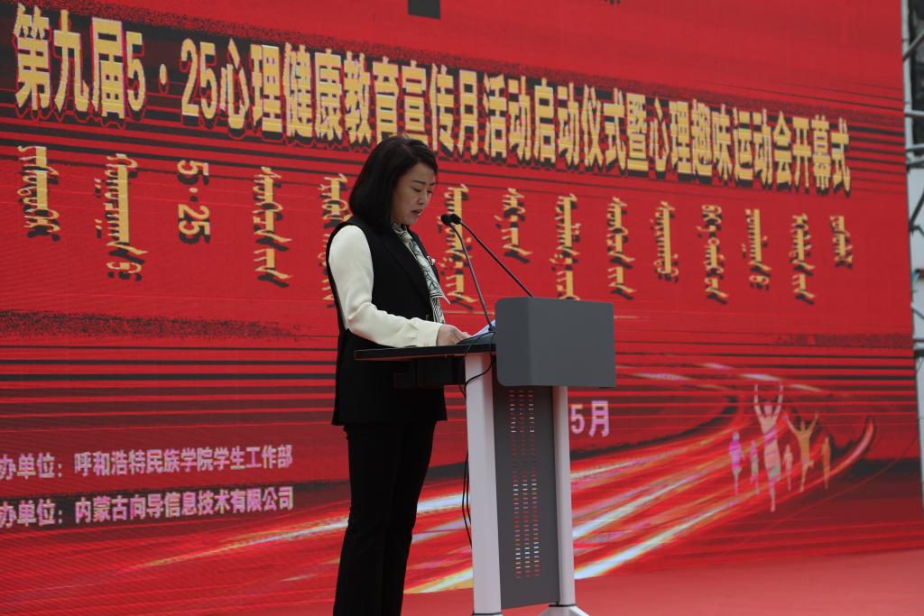 党委学生工作部部长海霞主持活动并宣读了第九届“5·25”心理健康教育宣传月活动方案。纳丽娜副校长与学院党总支书记代表共同开启启动球,宣告本届心理健康教育宣传月活动正式拉开帷幕。随后,纳丽娜副校长代表学校致辞,她指出加强和改进心理健康教育工作是新形势下促进大学生健康成长、培养高素质合格人才的重要途径,也是Beat365立德树人、和谐发展的重要内容。要求广大师生要提高政治站位,深刻认识加强大学生心理健康教育工作的重要性、紧迫性和长期性;要探索大学生心理发展的特点和规律,坚持育心育德相结合,不断提高工作的科学性、针对性和实效性;要强化组织领导,积极开展丰富多彩的心理健康教育活动,引导学生健康成长成才。并预祝本届心理健康宣传月各项活动取得圆满成功。