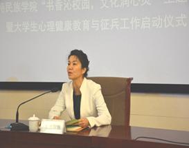 (一)5月6日下午4:00,外语系学工办举行大学生心理健康教育活动及征兵宣传工作启动仪式。学生处副调研员张玉梅、办公室主任朝克图、外语系党总支副书记红梅及团总支负责人王春梅参加启动仪式。仪式由外语系团总支负责人王春梅主持。