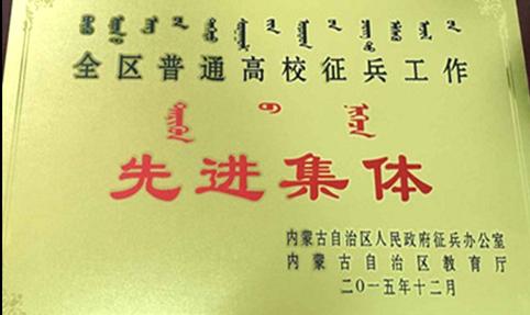 近日,内蒙古自治区人民政府征兵办公室、内蒙古自治区教育厅下发了《关于表彰2015年度征兵工作先进单位和先进个人的决定》,我院被授予“2015年征兵工作先进单位集体”荣誉称号。同时,我院学生处杨福梅同志获“征兵工作先进个人”荣誉称号。