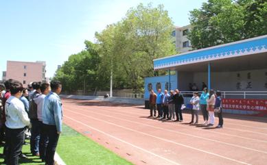 (二)为广泛宣传普及心理健康知识,促进大学生身心健康成长,号召当代大学生积极应征入伍,蒙文系于5月6日中午12:30时,在学校田径运动场举行大学生心理健康教育及大学生征兵宣传活动启动仪式。学生工作处副处长包仓、公寓管理中心主任白龙、蒙文系党总支书记周双喜、党总支副书记白东升、团总支程刚及各班班主任辅导员、全系师生共350多人参加会议,会议由党总支副书记白东升主持。