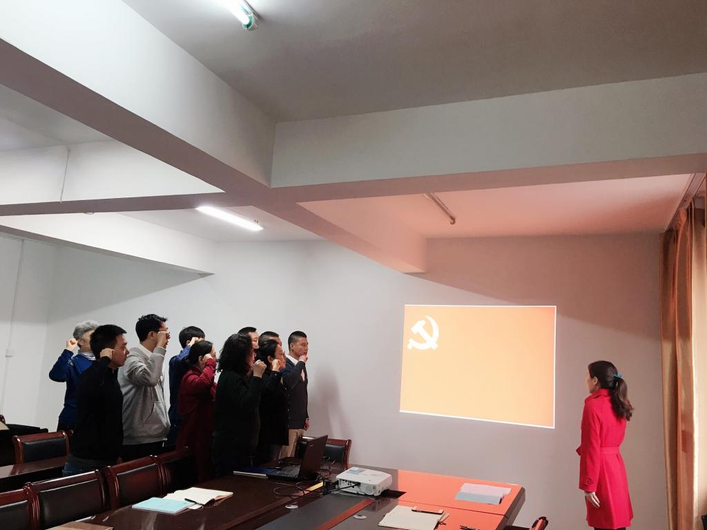 活动伊开始,在王丽同志的带领下,全体党员在鲜红的党旗前庄严宣誓“我志愿加入中国共产党,拥护党的纲领,遵守党的章程,履行党员义务,执行党的决定,严守党的纪律,保守党的秘密,对党忠诚,积极工作,为共产主义奋斗终身,随时准备为党和人民牺牲一切,永不叛党”。党员们重温入党时的誓言,再次感受作为一名共产党人的伟大使命。