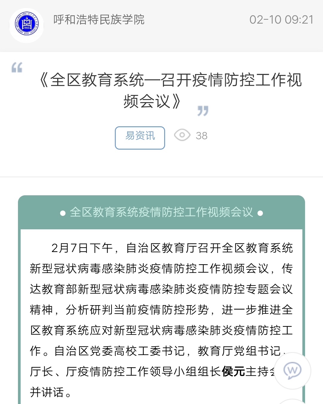 《全区教育系统—召开疫情防控工作视频会议》