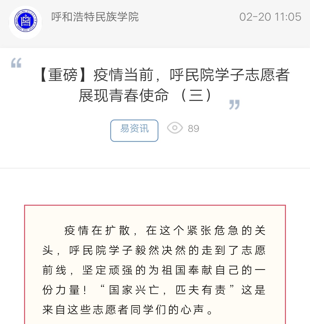 下一条:【重磅】疫情当前,呼民院学子志愿者展现青春使命 (二)