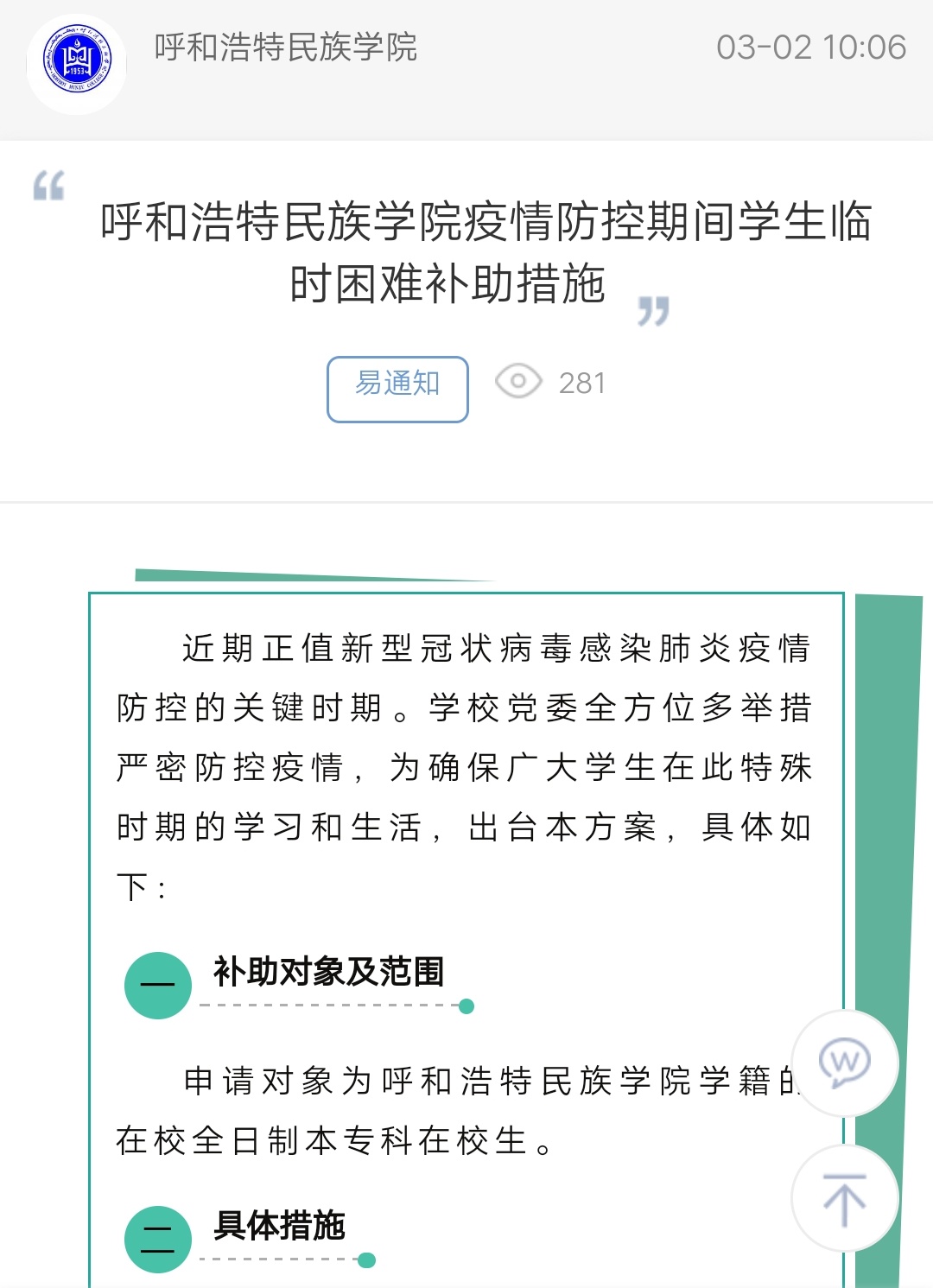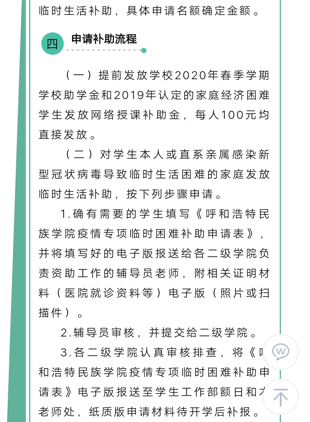 Beat365唯一官方网站疫情防控期间学生临时困难补助措施