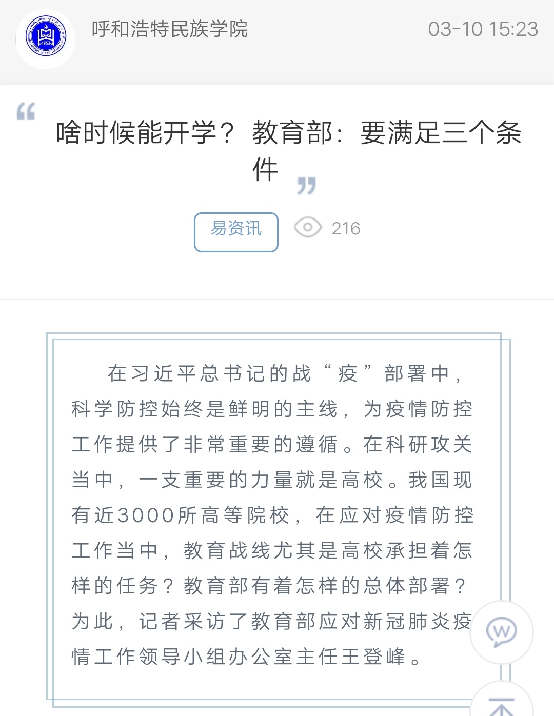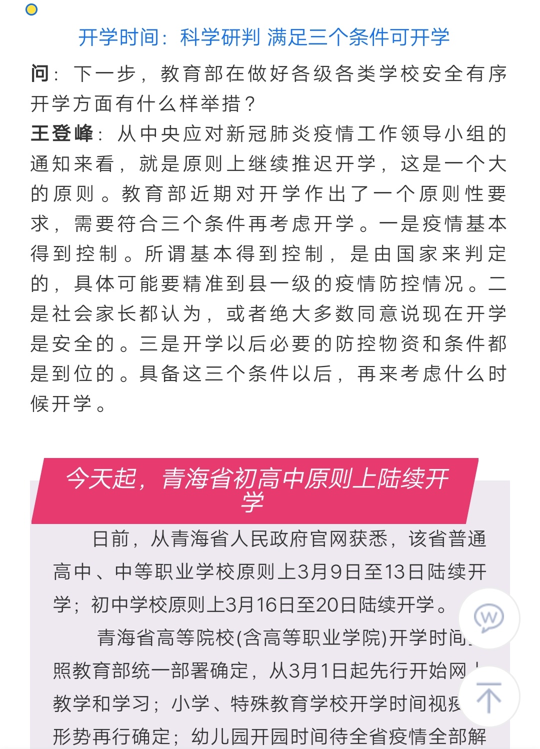 啥时候能开学? 教育部:要满足三个条件