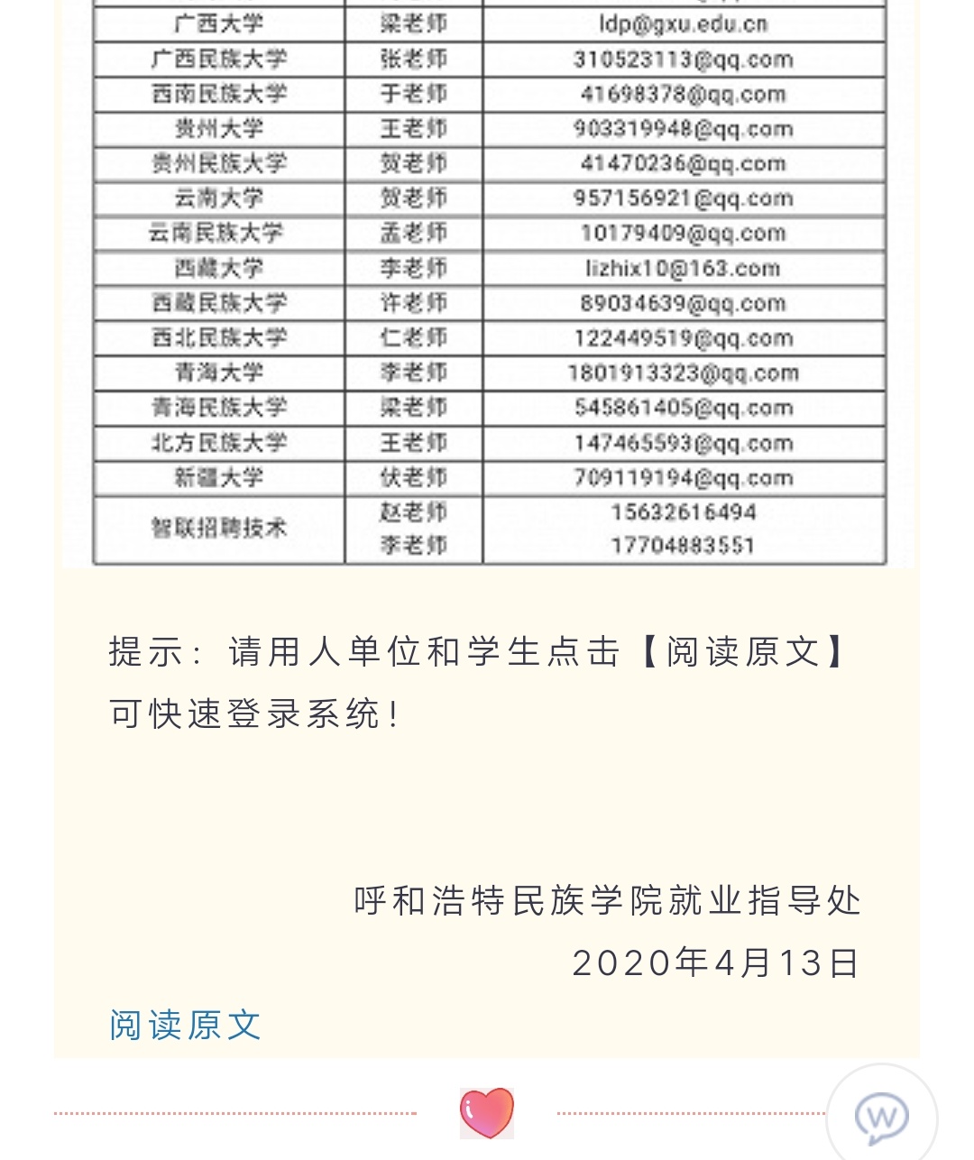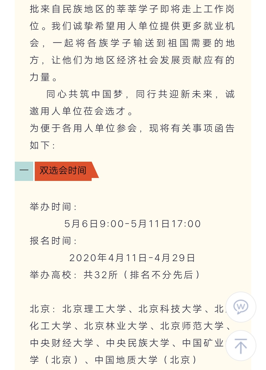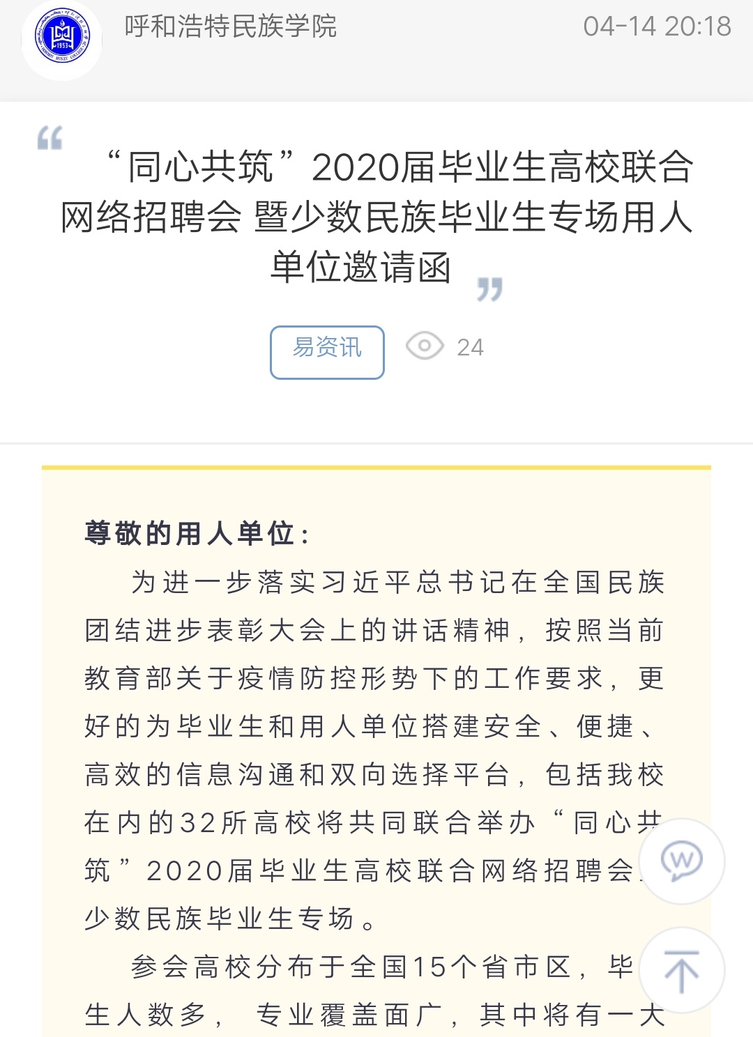 “同心共筑”2020届毕业生高校联合网络招聘会 暨少数民族毕业生专场用人单位邀请函