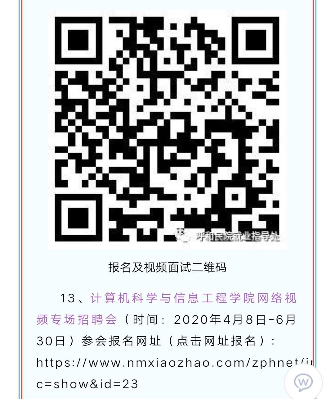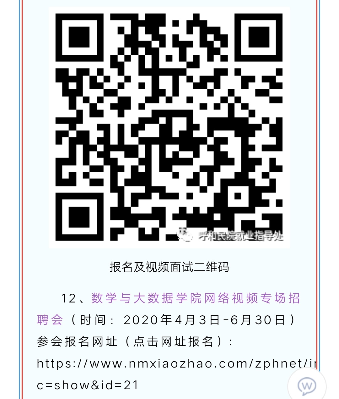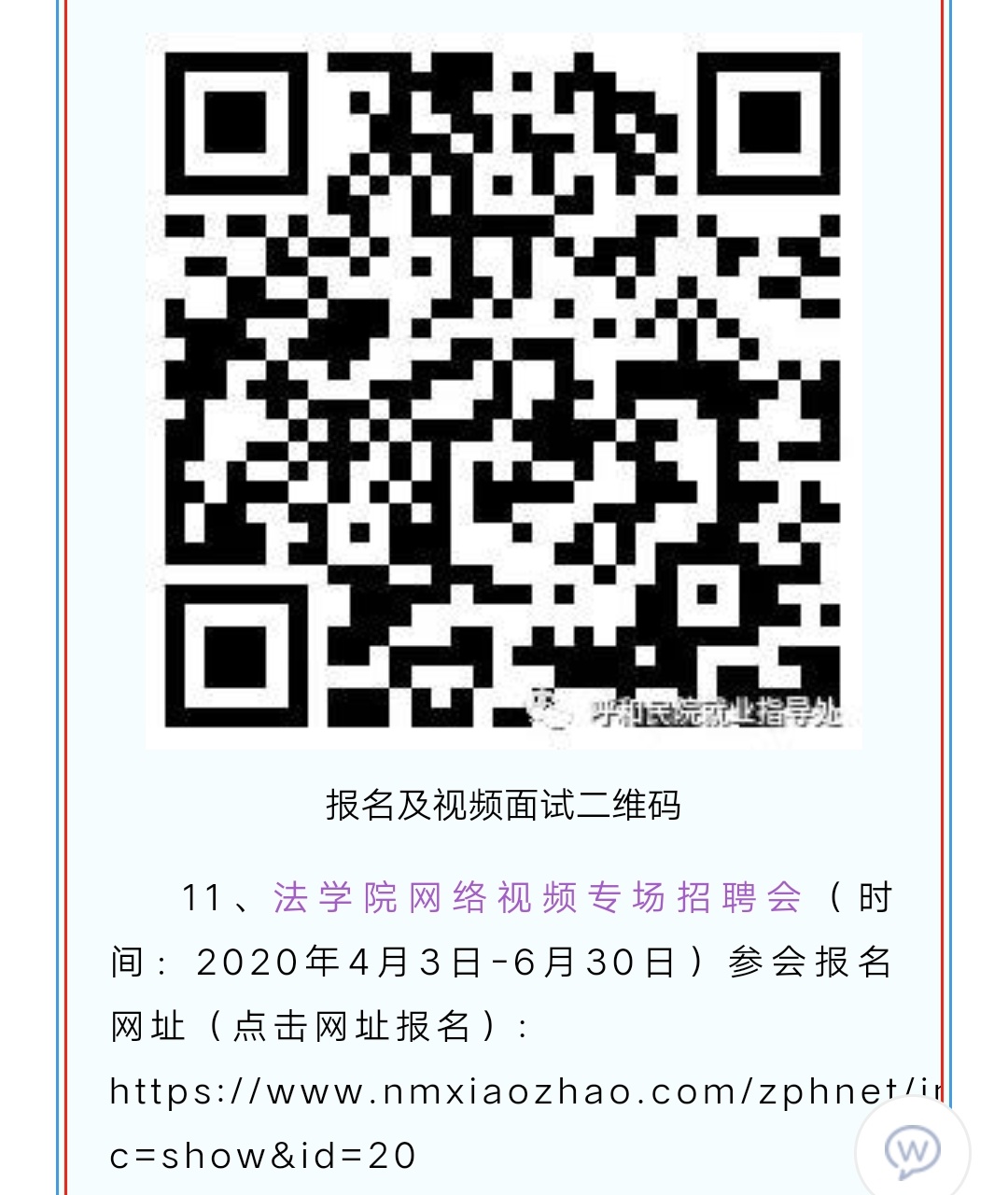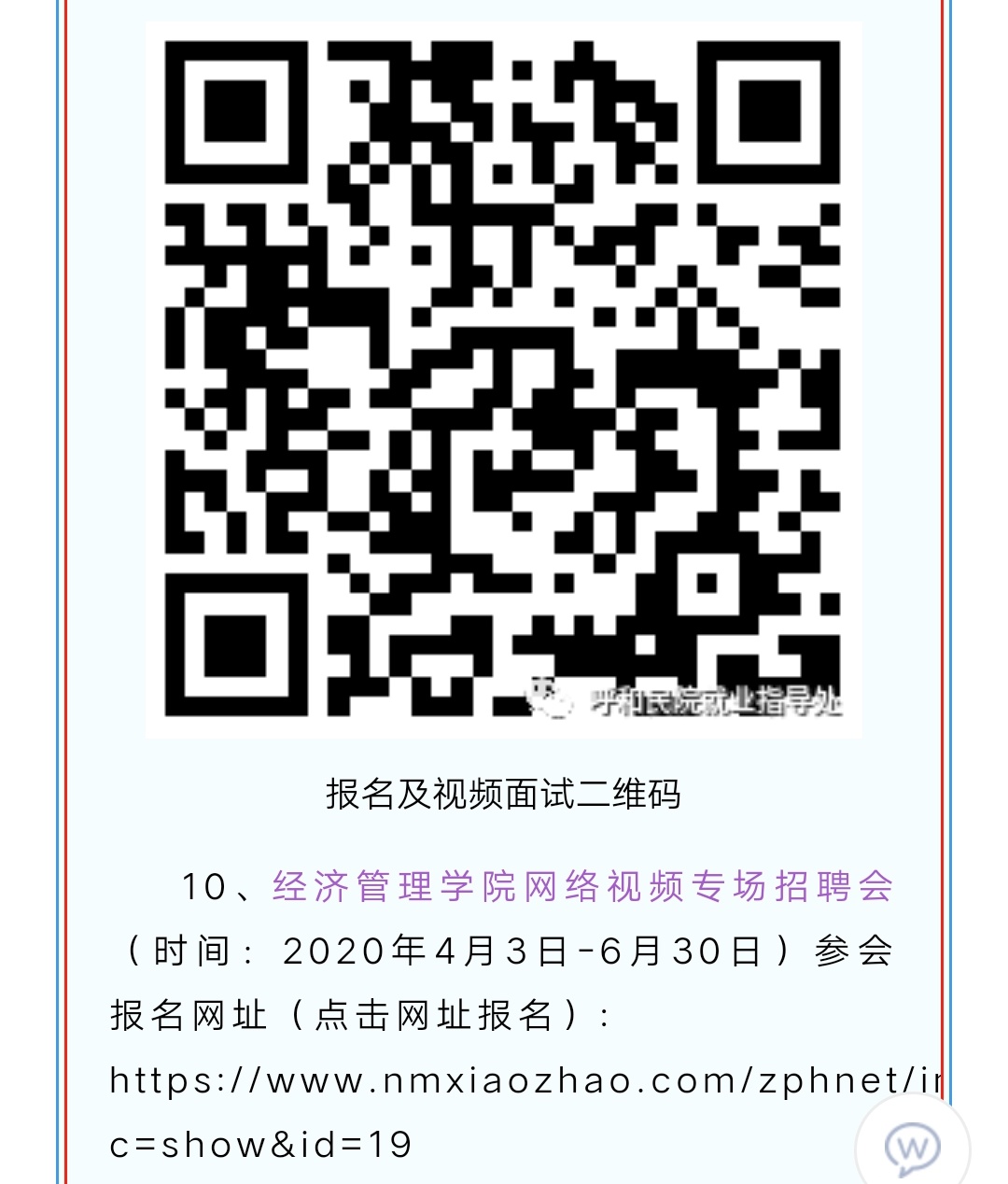 下一条:“同心共筑”2020届毕业生高校联合网络招聘会 暨少数民族毕业生专场用人单位邀请函