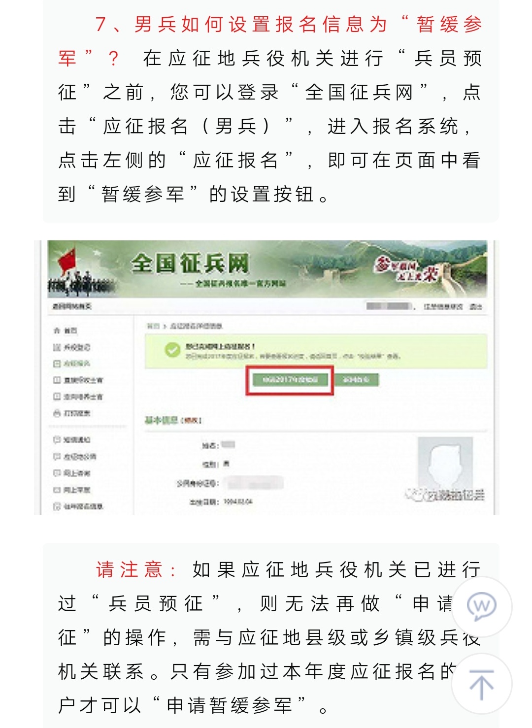 全国征兵网上报名常见问题解决办法