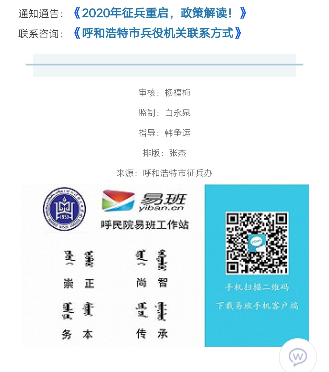 下一条:青城征兵 致全市大学毕业生的一封信(附大学毕业生征兵政策)