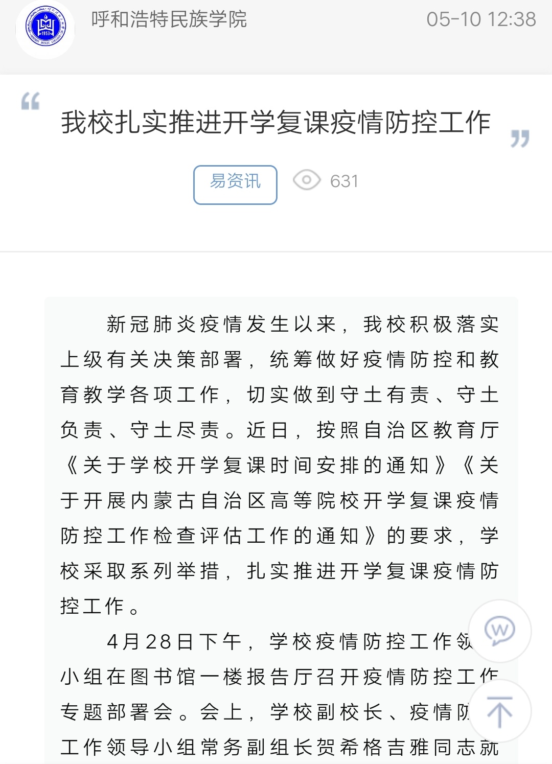 Beat365扎实推进开学复课疫情防控工作