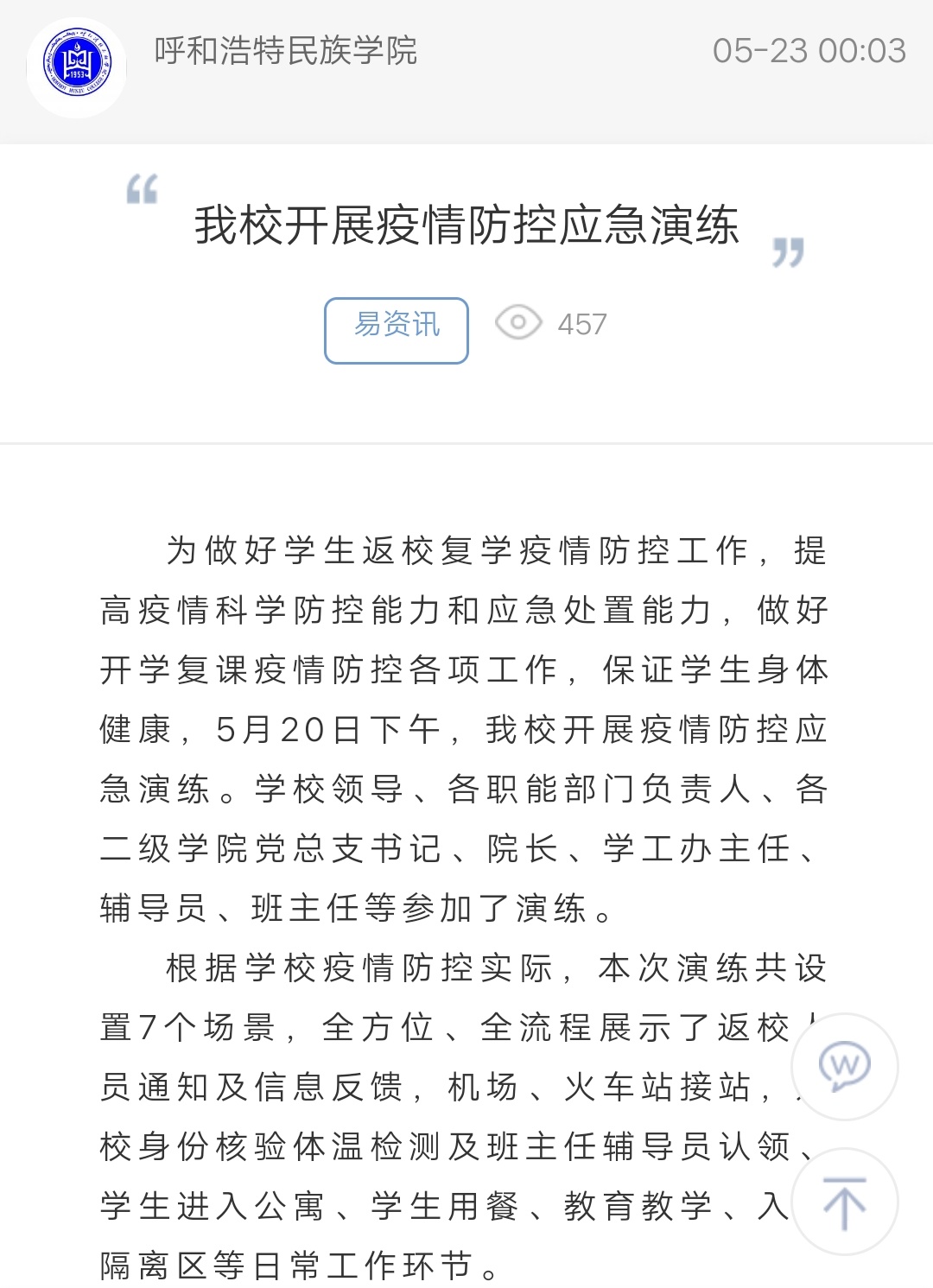 上一条:【战“疫”有我——我行动】欢迎回家——呼和民院迎来首批返校学生