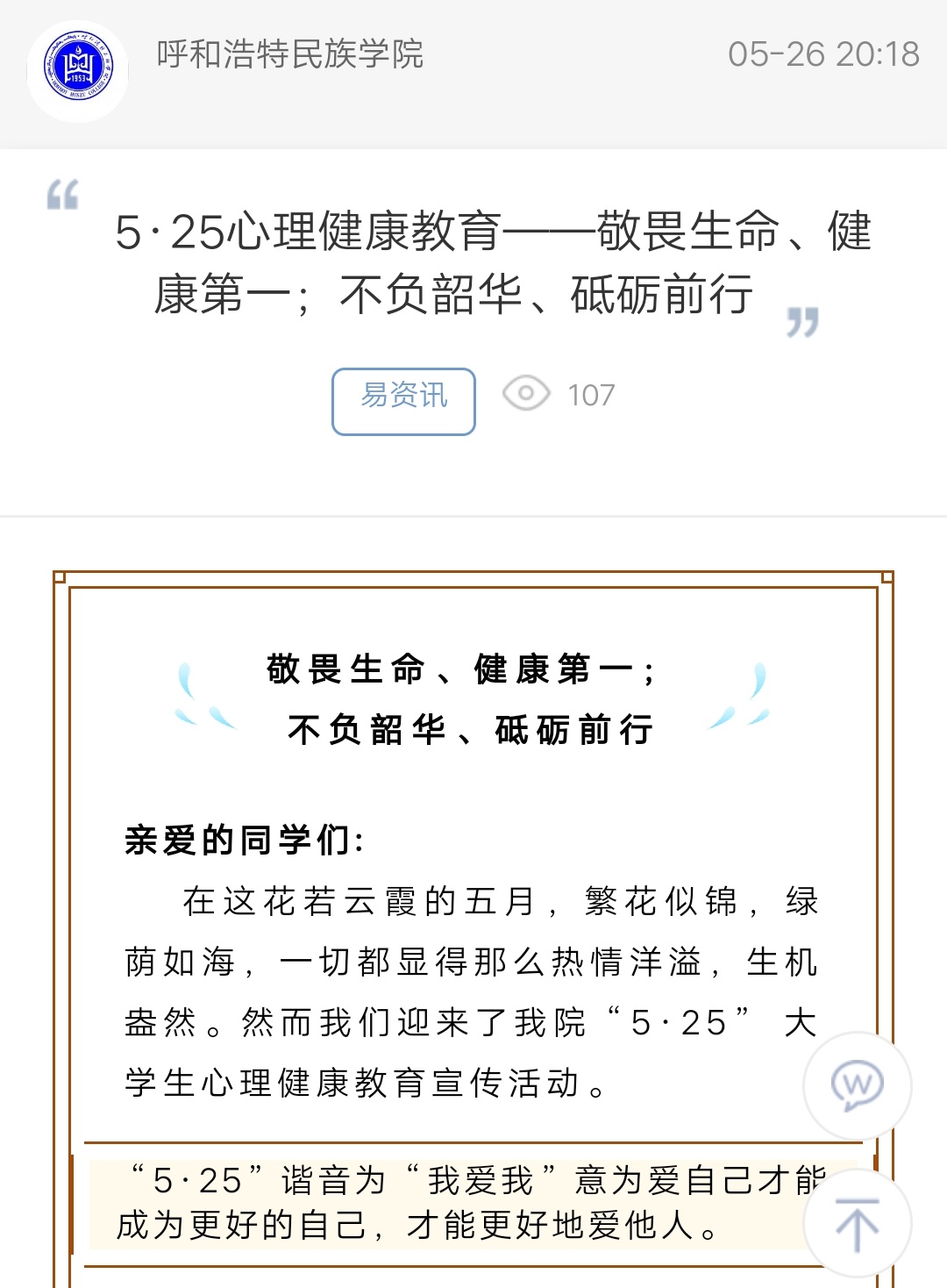 5·25心理健康教育——敬畏生命、健康第一;不负韶华、砥砺前行