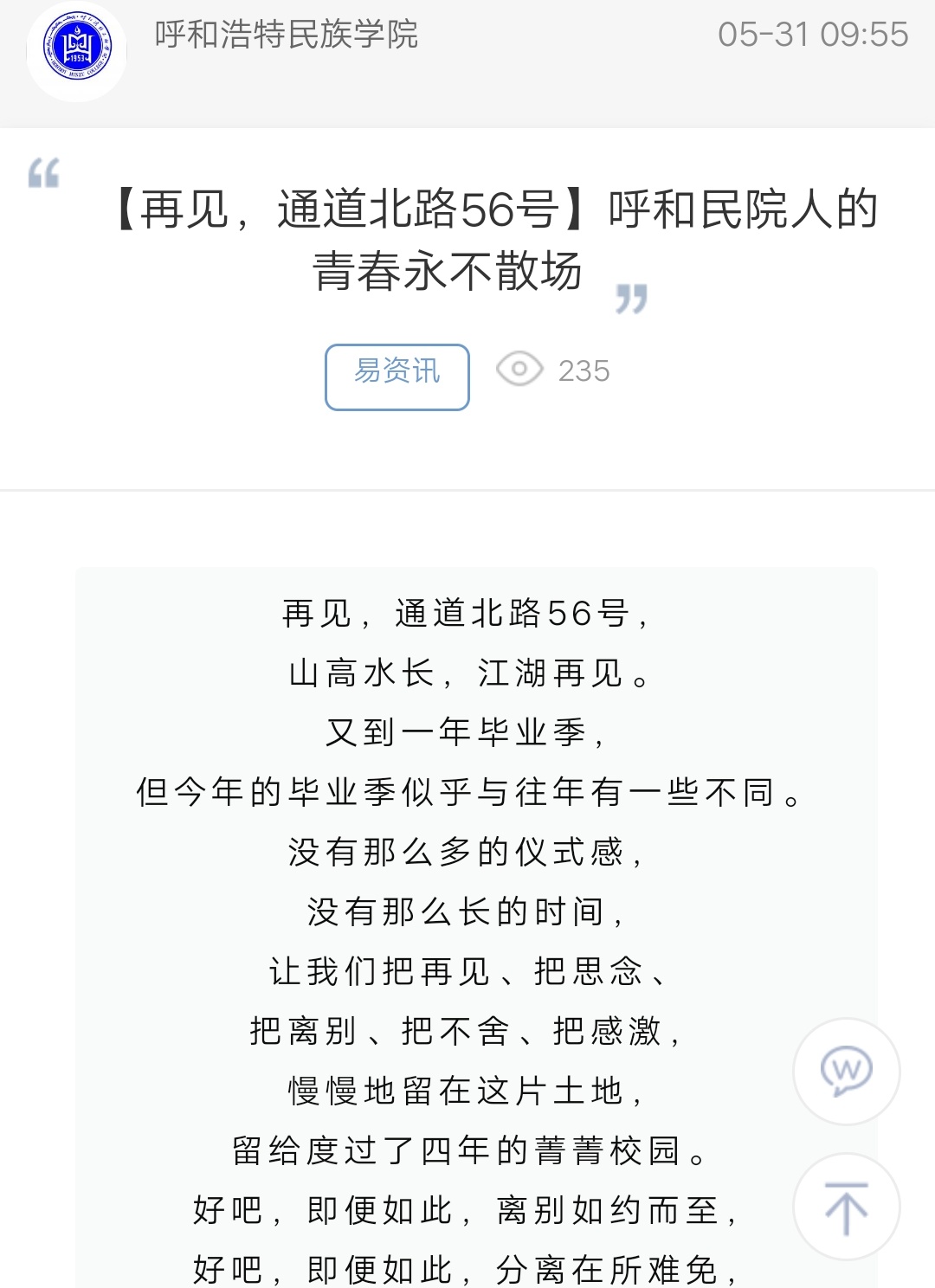 【再见,通道北路56号】呼和民院人的青春永不散场