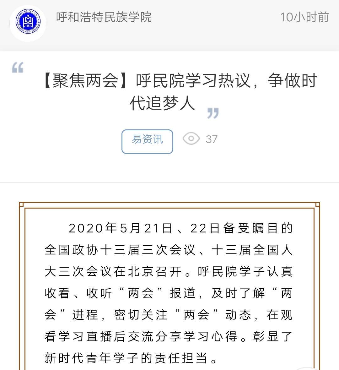 【聚焦两会】呼民院学习热议,争做时代追梦人