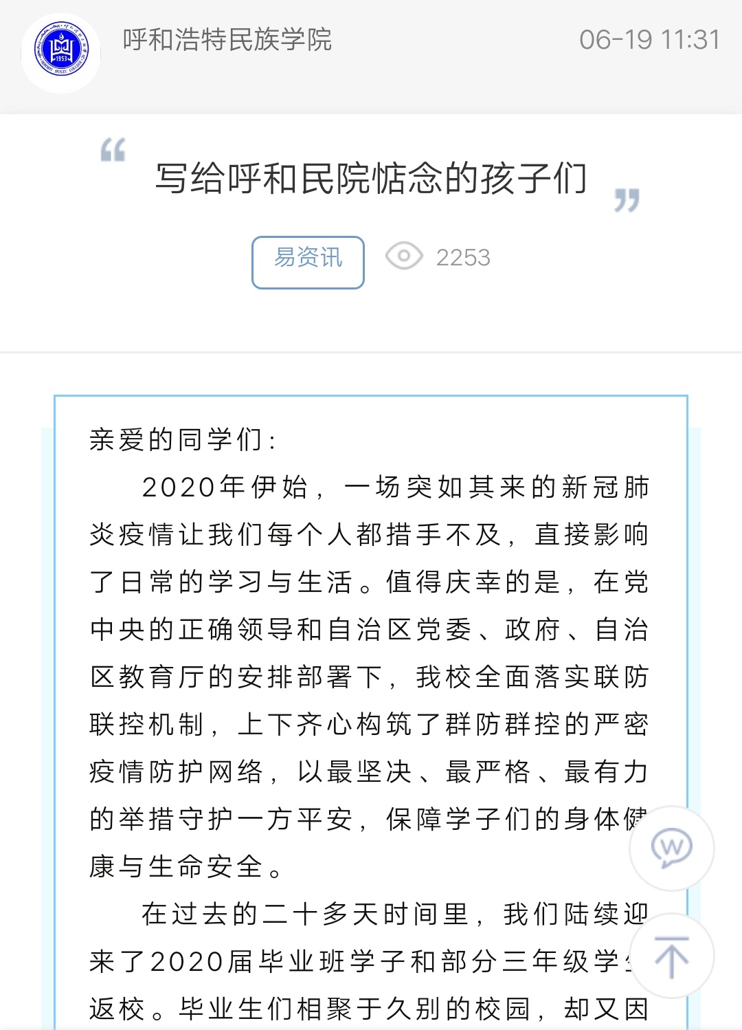 写给呼和民院惦念的孩子们