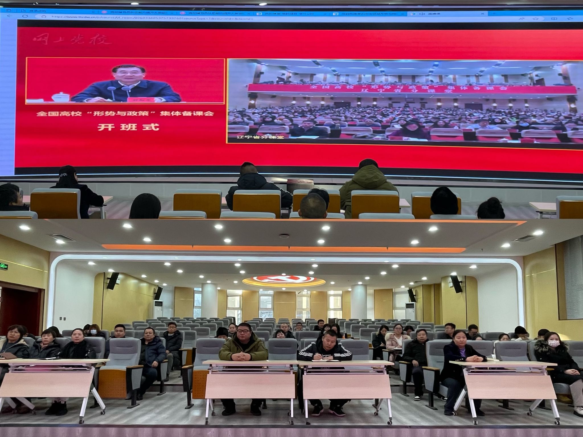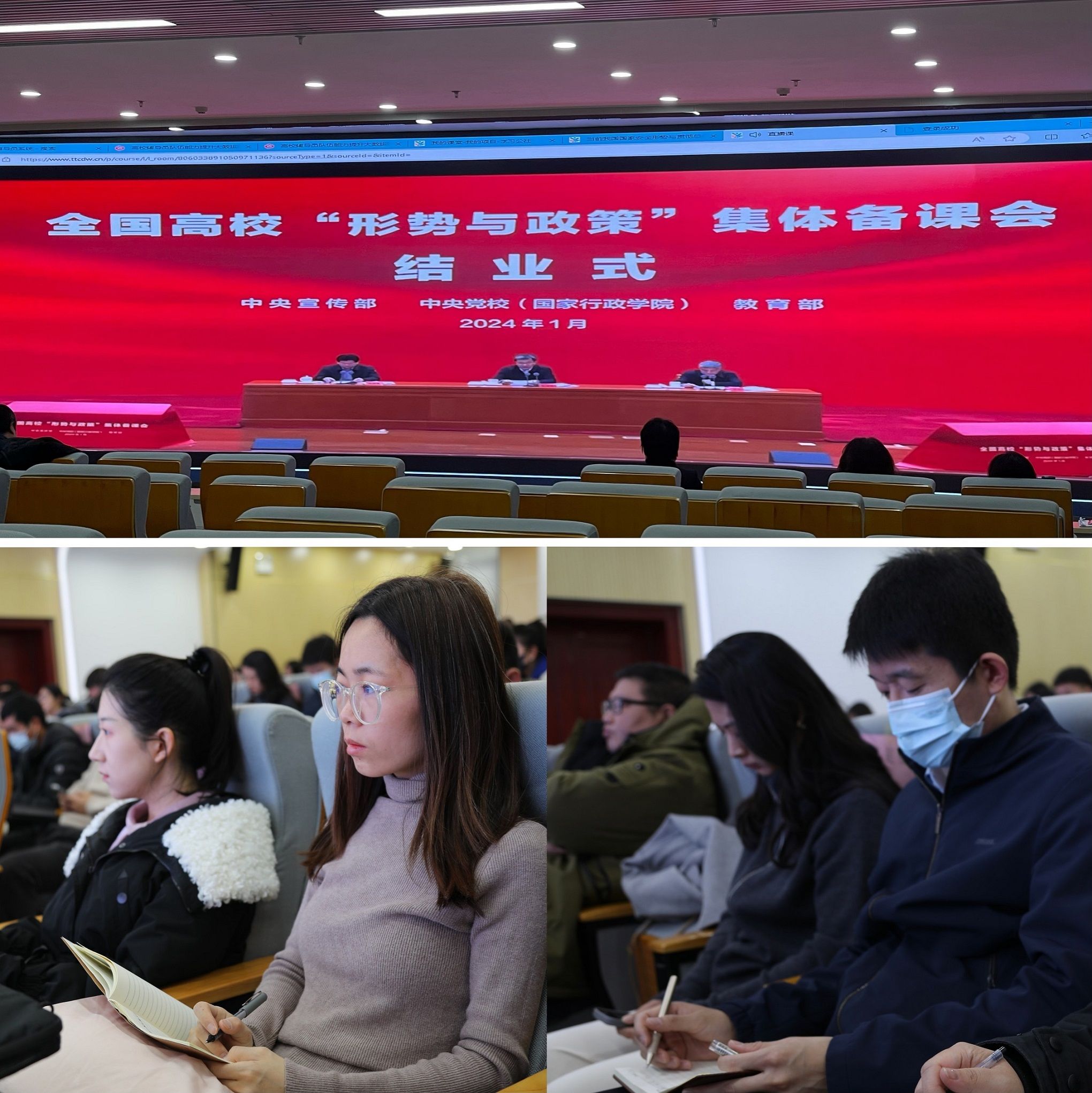 1月9日至13日,中央宣传部、中央党校(国家行政学院)、教育部联合举办全国高校“形势与政策”集体备课会。Beat365按照教育部思想政治工作司印发的《关于做好全国高校“形势与政策”集体备课会辅导员参训组织工作的提示》文件要求,组织学校全体专兼职辅导员、思政课教师参加此次集体备课会。集体备课会在Beat365北区图书馆一楼报告厅设置分课堂,分课堂依托高校辅导员队伍能力提升大数据赋能平台收看培训课程直播,由党委学生工作部(处)思想政治教育科全程负责培训任务,共75人集中参训。