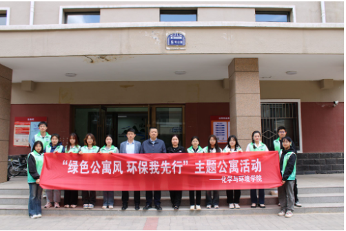 为深入贯彻落实习近平生态文明思想,增强大学生绿色节能意识,丰富学生公寓文化生活,营造健康、文明、和谐的公寓氛围,4月28日,化学与环境学院组织学生在南苑8号公寓楼前开展“绿色公寓风,环保我先行”主题公寓活动。