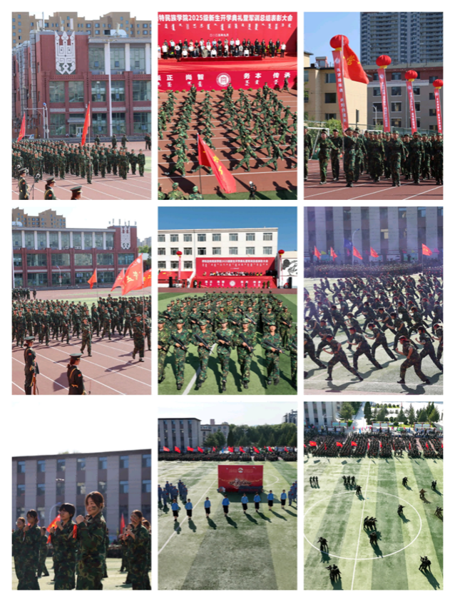 9月1日,学校在北操场举行2025级新生军训动员大会。校党委副书记、军训工作领导小组副组长格根哈斯向军训团授旗,新城区人武部政委宋晓光、武警内蒙古总队机动中队中队长朱博文及3000余名师生参会。大会明确了军训任务——涵盖队列训练、内务整理、歌咏比赛、国防知识学习等,旨在通过军事化训练培养学生纪律意识与家国情怀。法学院新生代表孙依如汗领誓,全体新生以铿锵誓言承诺“以青春之名,担强国之任”。