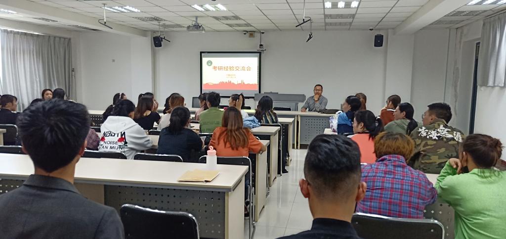 本次会议邀请学院2019年顺利考上研究生的刘阳、康丽梅、高亚倩、姜春雪等4名同学进行经验交流。四名同学依次介绍了自己的考研情况、录取院校、考研心得等,并就院校选择、复习计划、心态调整等方面与学弟学妹进行了分享。与会2020届考研班学生与学姐进行了现场交流,就复习过程中遇到的问题等进行咨询。