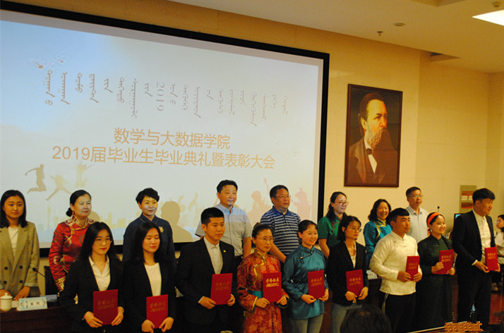 2019年6月12日,数学与大数据学院2019届毕业生毕业典礼暨表彰大会在图书馆一楼报告厅举行。数学与大数据学院党总支书记布和朝鲁、党总支副书记郝喜凤、副院长王海清、副院长额尔敦其其格、办公室主任乌云其其格、小学数学教育教研室主任其木格、经济数学教研室主任白秀及班主任、任课老师、学生代表参加了本次大会。会议由辅导员金玲老师主持。
