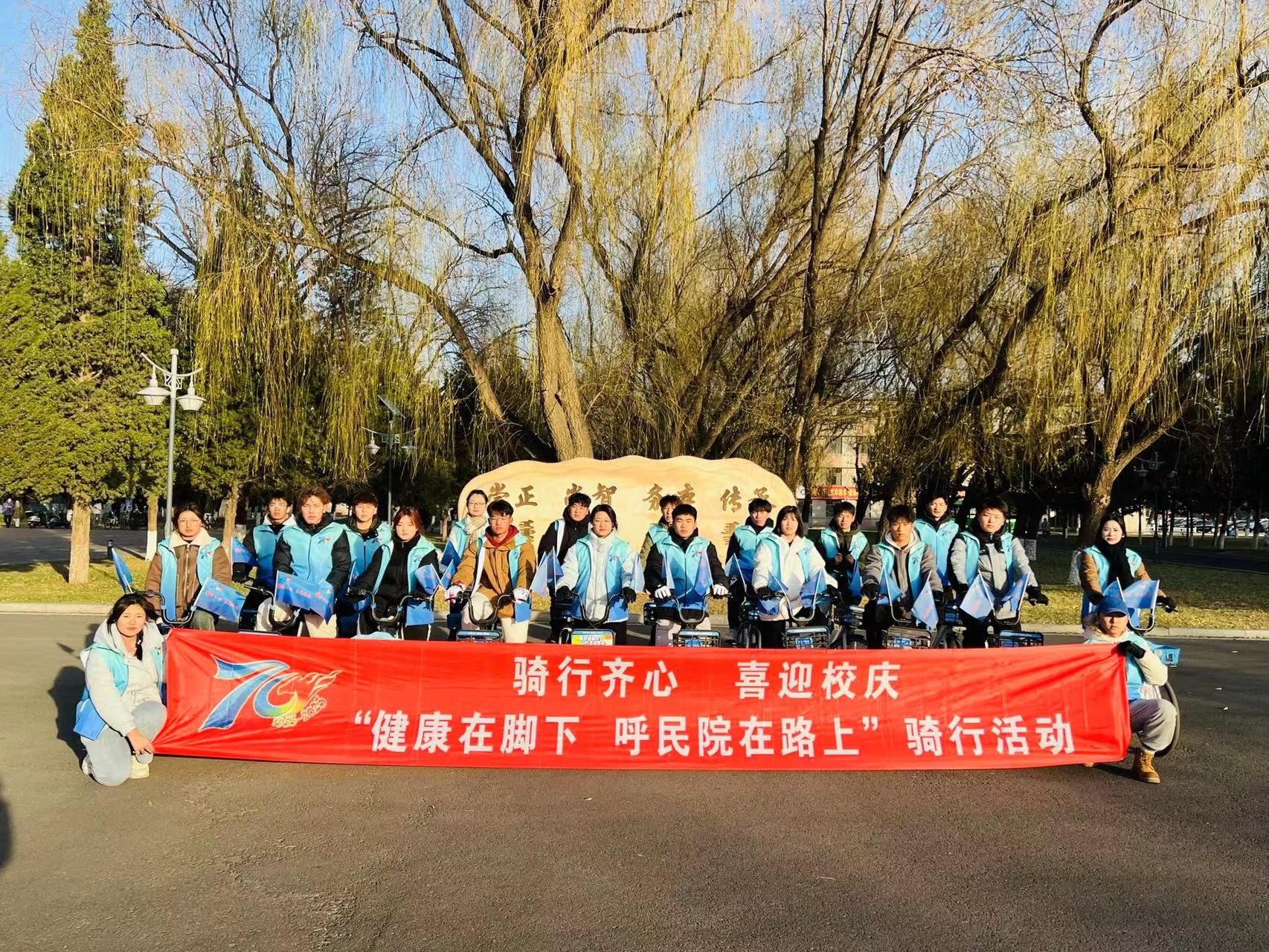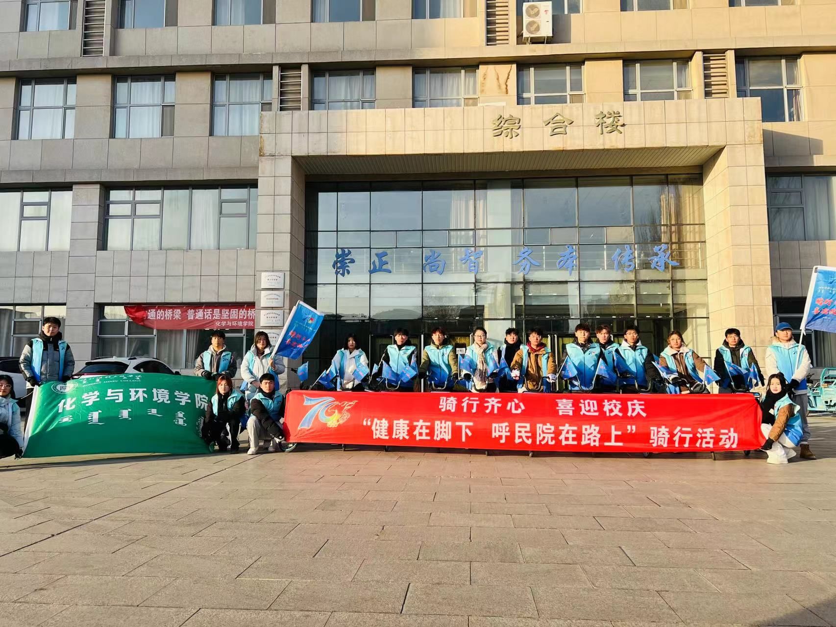 为喜迎70周年校庆,营造良好校庆氛围,激发同学们的爱校热情,11月25日,化学与环境学院组织30余名学生干部开展“骑行齐心 喜迎校庆——健康在脚下 呼民院在路上”校庆主题骑行活动。