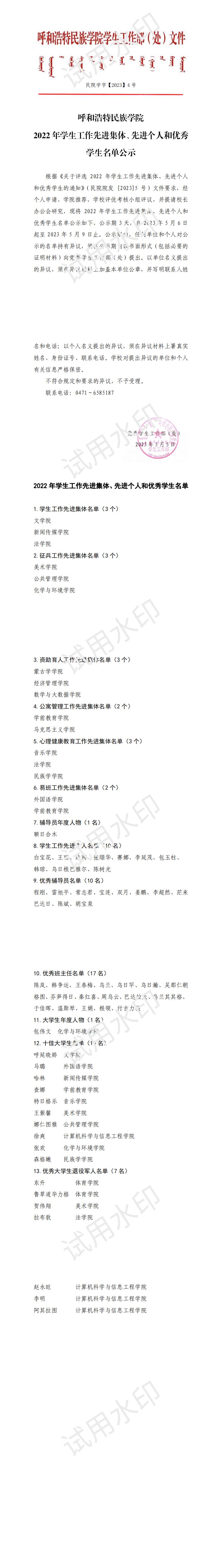 关于2022年学生工作先进集体、先进个人和优秀学生拟表彰对象的公示