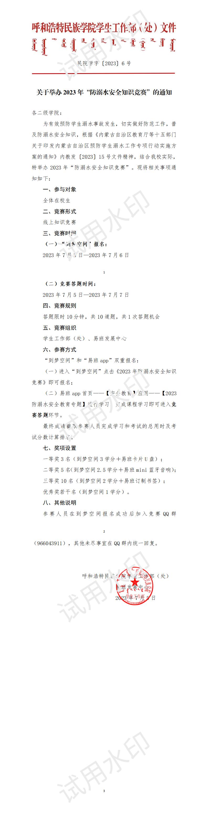 关于举办2023年“防溺水安全知识竞赛”的通知
