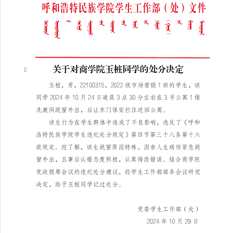 上一条:关于对数学与大数据学院阿木吉力图同学的处分决定