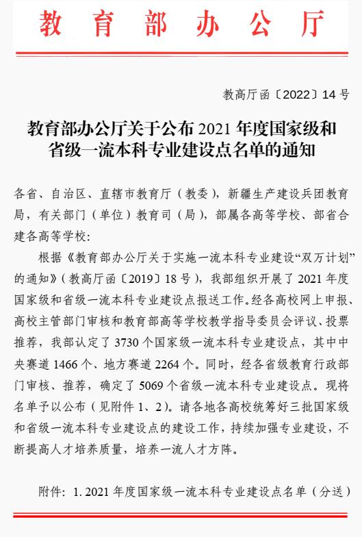 喜报 :Beat365又1个本科专业获批2021年度国家级一流本科专业建设点