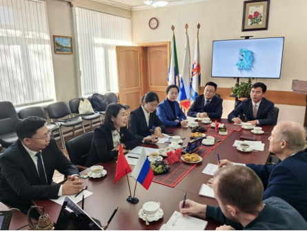 出访团与俄罗斯符拉迪沃斯托克国立大学代表座谈交流