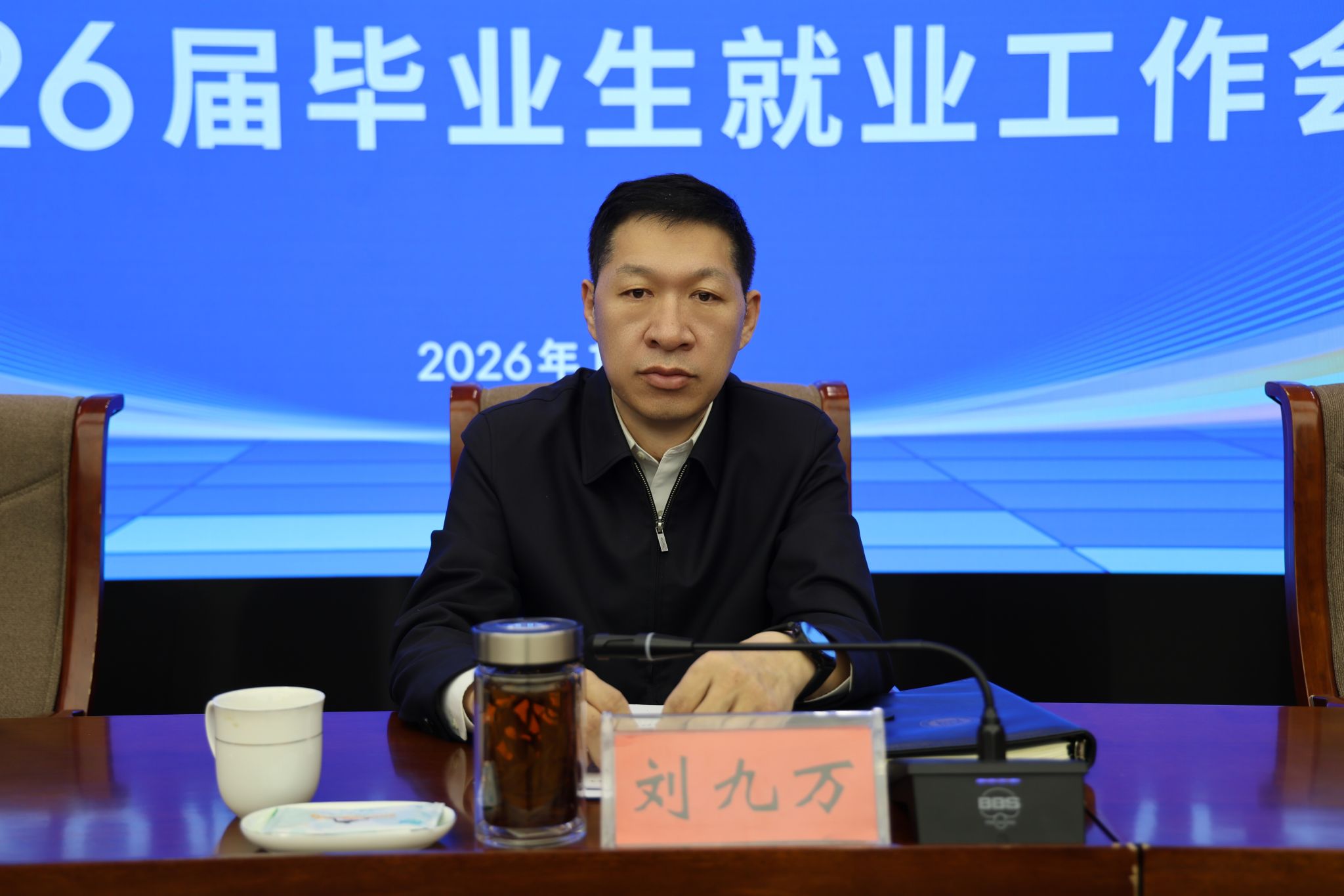 刘九万在讲话中对学校2025届毕业生就业工作取得的成绩给予充分肯定,对当前面临的就业形势进行全面分析,同时指出存在的不足,并对做好2026届毕业生就业工作提出了具体要求。