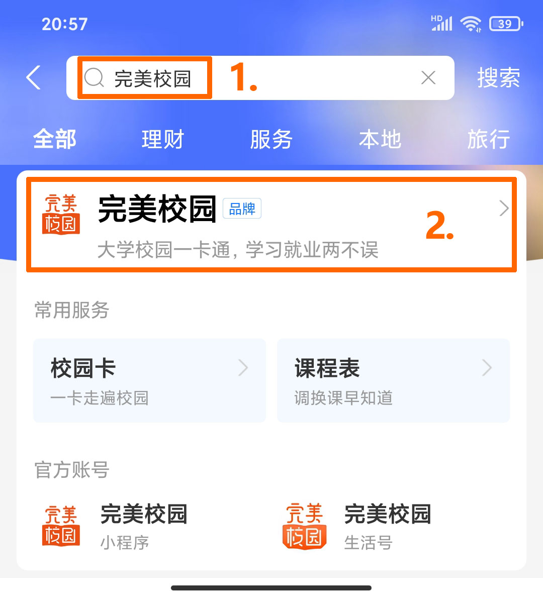 支付宝桌面无完美校园,则搜索“完美校园”